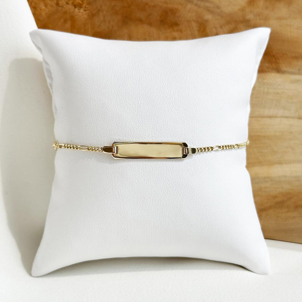 » Schildarmbänder sind eine beliebte Geschenkidee zur Erstkommunion – besonders für Jungen, eignen sich aber ebenso für Mädchen. Die gravierbare Fläche bietet Platz für einen Namen, ein Datum oder ein kleines Symbol und macht jedes Armband zu einem persönlichen Erinnerungsstück. Wir führen verschiedene Ausführungen mit unterschiedlichen Kettchen, abgestimmt auf Kinderhandgelenke. Auf Wunsch kann die Länge auch individuelle angepasst werden – eine Kürzung oder Verlängerung ist jederzeit möglich. Alle Schildarmbänder sind aus 585 oder 750 Gold oder Weißgold gefertigt und werden mit Sorgfalt graviert. Gerne beraten wir Sie bei der Auswahl und setzen Ihre Wunschgravur mit Freude um.