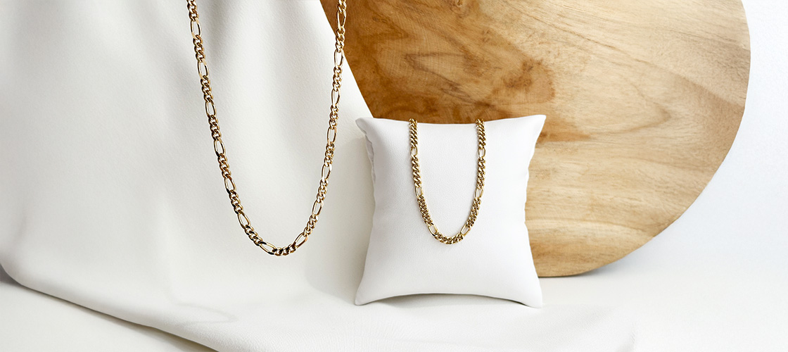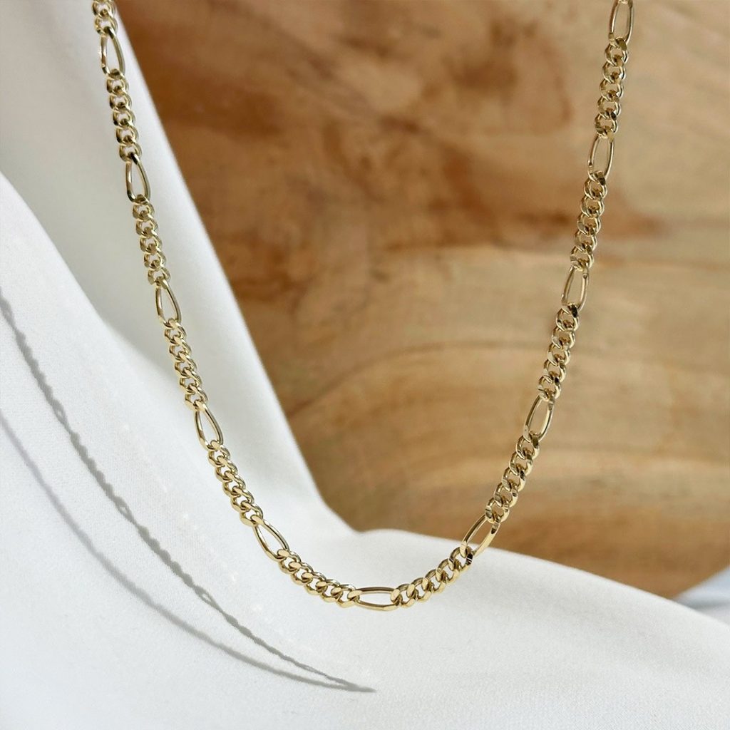 Entdecken Sie die zeitlose Eleganz der Figarokette und lassen Sie sich von ihrer Vielseitigkeit begeistern. Ob in Weißgold oder Gelbgold, die Figarokette bleibt ein Klassiker, der für Stil und Qualität steht – ein Schmuckstück, das über Generationen hinweg geschätzt wird.