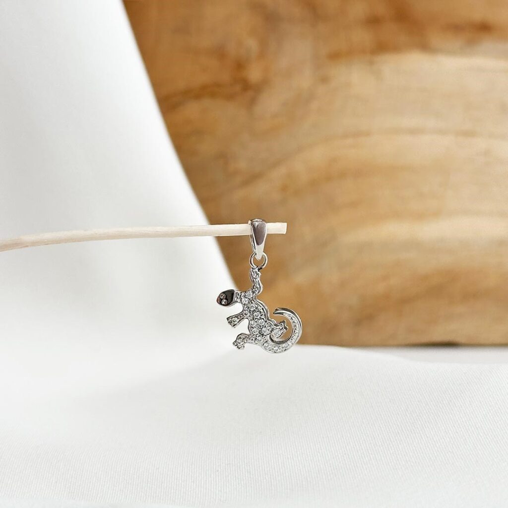 Eidechsen-Anhänger für Bettelarmband oder Halskette, besetzt mit weißem Zirkonia, als Nahaufnahme fotografiert. Produkt 16110
