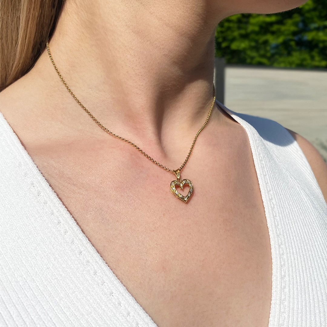 Dieser Brillant Herzanhänger aus 585 Gelbgold lässt die Herzen höherschlagen. Mit insgesamt 0,12ct. Brillant besetzt, strahlt der Goldanhänger eine zeitlose Eleganz aus. Das Herzsymbol repräsentiert Verbundenheit und Treue, weshalb dieser Anhänger gerne zu besonderen Anlässen wie der Geburt eines Kindes, dem Hochzeitstag oder dem Geburtstag verschenkt wird. Um den Anhänger stilvoll zu tragen, bieten wir in unserem Sortiment passende Goldkette an. Gerne verpacken wir Ihnen das Schmuckstück passend zum jeweiligen Anlass.