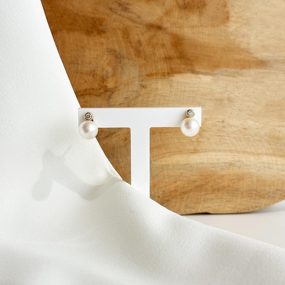 Diese stilvollen Brillant Perlenohrstecker vereinen die klassische Ausstrahlung von Akoyaperlen mit dem eleganten Funkeln von Brillanten. Über der sanft schimmernden Perle sitzt ein Brillant, eingefasst in 585 Gelbgold. Die Kombination aus Perle und Diamant verleiht diesen Ohrsteckern eine elegante Note – perfekt für besondere Anlässe, aber auch dezent genug für den Alltag. Die warme Goldfassung harmoniert wunderbar mit den natürlichen Farbtönen der Perle und unterstreicht ihre zeitlose Eleganz. Ein stilvolles Schmuckstück für jede Generation.
