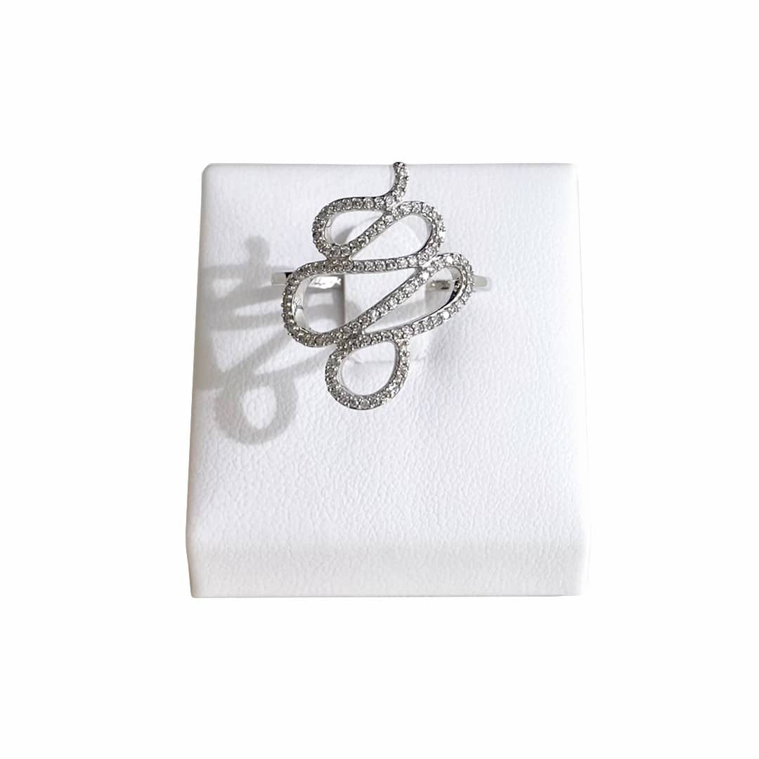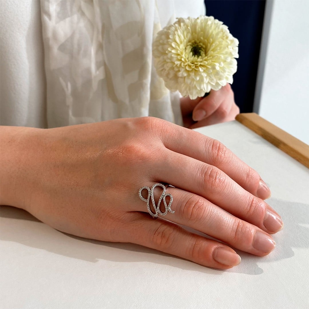 Dieser elegante Diamantring aus 585er Weißgold besticht durch sein Schlaufen-Design. Zarte Linien aus Weißgold formen sich zu geschwungenen Bögen, die sich wie feine Schleifen umeinander legen. In die geschwungene Form sind kleine funkelnde Brillanten eingefasst, die dem Ring ein filigranes, aber dennoch markantes Strahlen verleihen. Die schmale Ringschiene sorgt für angenehmen Tragekomfort, während das bewegte Oberteil dem Schmuckstück eine besondere Leichtigkeit und Eleganz verleiht. Ein femininer Ring mit liebevollen Details – ideal als Geschenk oder um sich selbst eine Freude zu machen. Für alle, die Design und Bedeutung vereinen möchten. Der Ring ist in der Weite 58 lagernd.