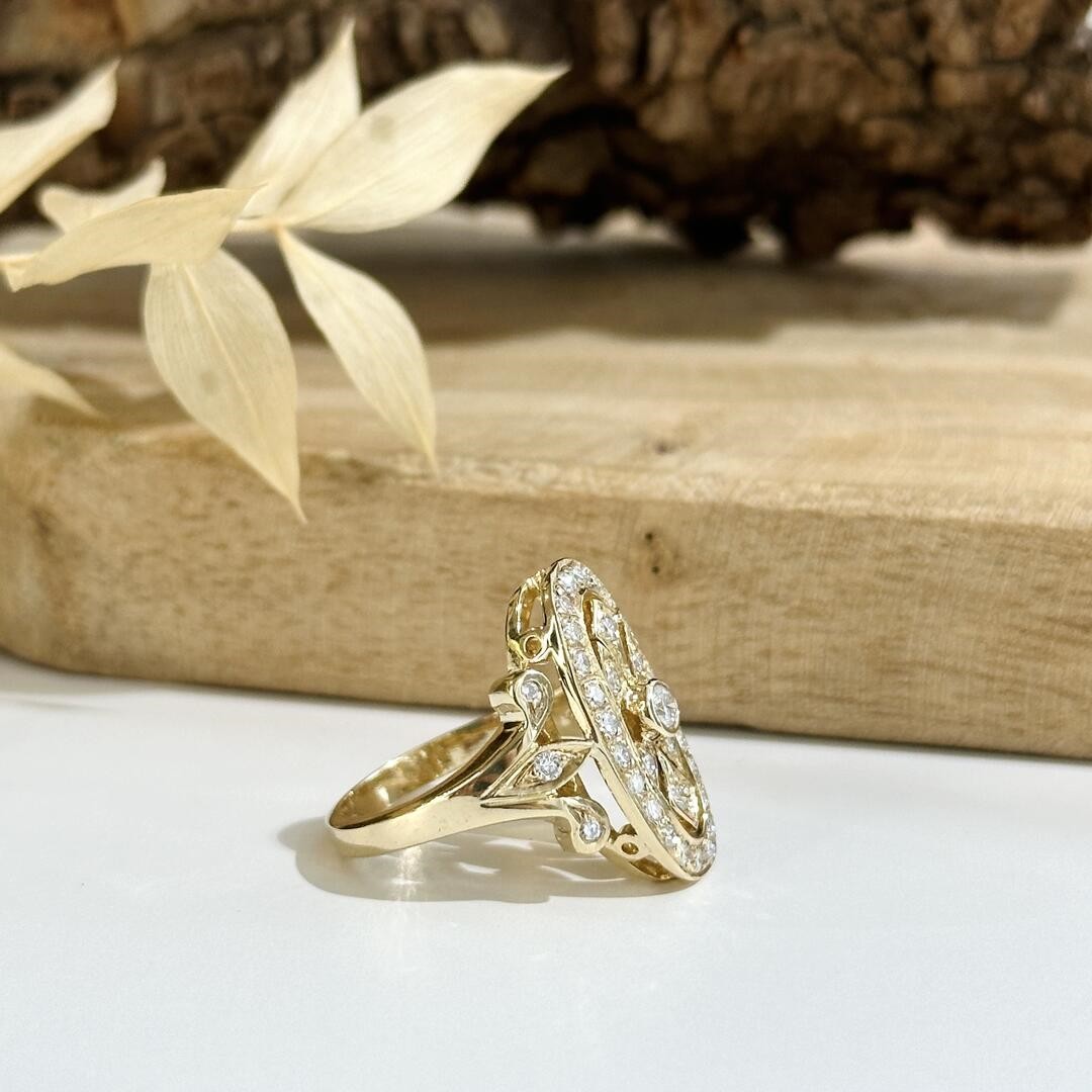 Dieser Brillantring ist aus 585 Gelbgold gefertigt und mit insgesamt 0,629ct. Brillant besetzt. Der Ring vereint ein klassisches Design mit raffinierten Details, die ihn zu einem wahren Blickfang machen. Das Herzstück dieses Schmuckstücks ist seine ovale Form, die feminin und ansprechend wirkt. Die sanften Kurven schmiegen sich an den Finger, während der warme Goldton dem Ring eine elegante und unvergleichliche Ausstrahlung verleiht. Sein zeitloses Design und die hochwertige Verarbeitung machen diesen Ring zu einem Schmuckstück, das Sie ein Leben lang begleiten wird. Der Brillantring ist in der Ringweite 55 im Geschäft lagernd.