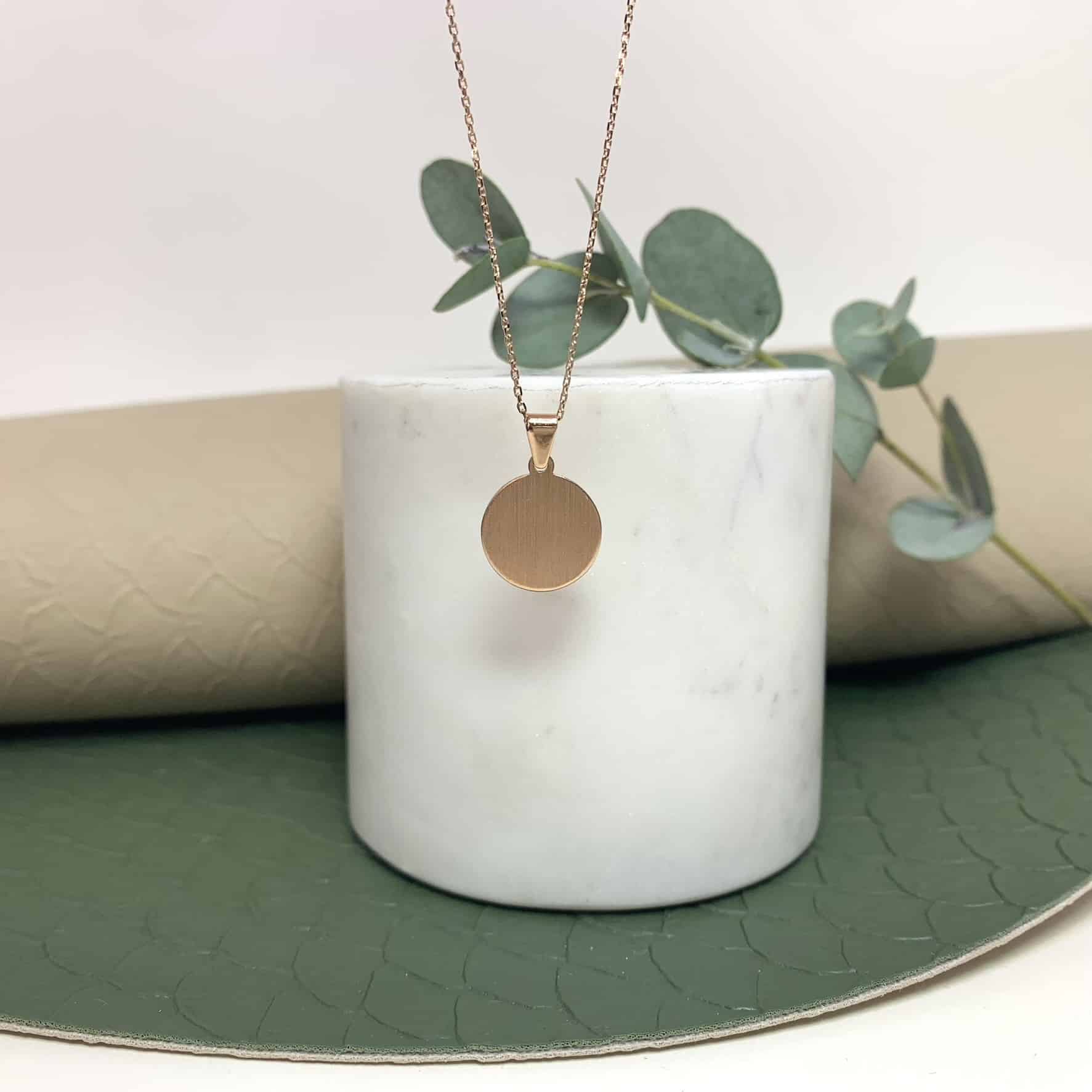 Diese Gravurplatte aus 585 Roségold besticht durch ihre schlichte, runde Form und eine mattierte Oberfläche, die ihr eine elegante Zurückhaltung verleiht. Mit einem Durchmesser von 12mm bietet sie Platz für eine persönliche Gravur – etwa Initialen, ein Symbol oder ein besonderes Datum. Der Anhänger lässt sich vielseitig kombinieren und harmoniert wunderbar mit weiteren Goldanhängern oder feinen Goldketten aus unserem Sortiment. Für Babys und Kinder empfehlen wir eine Kettenlänge von 36cm.