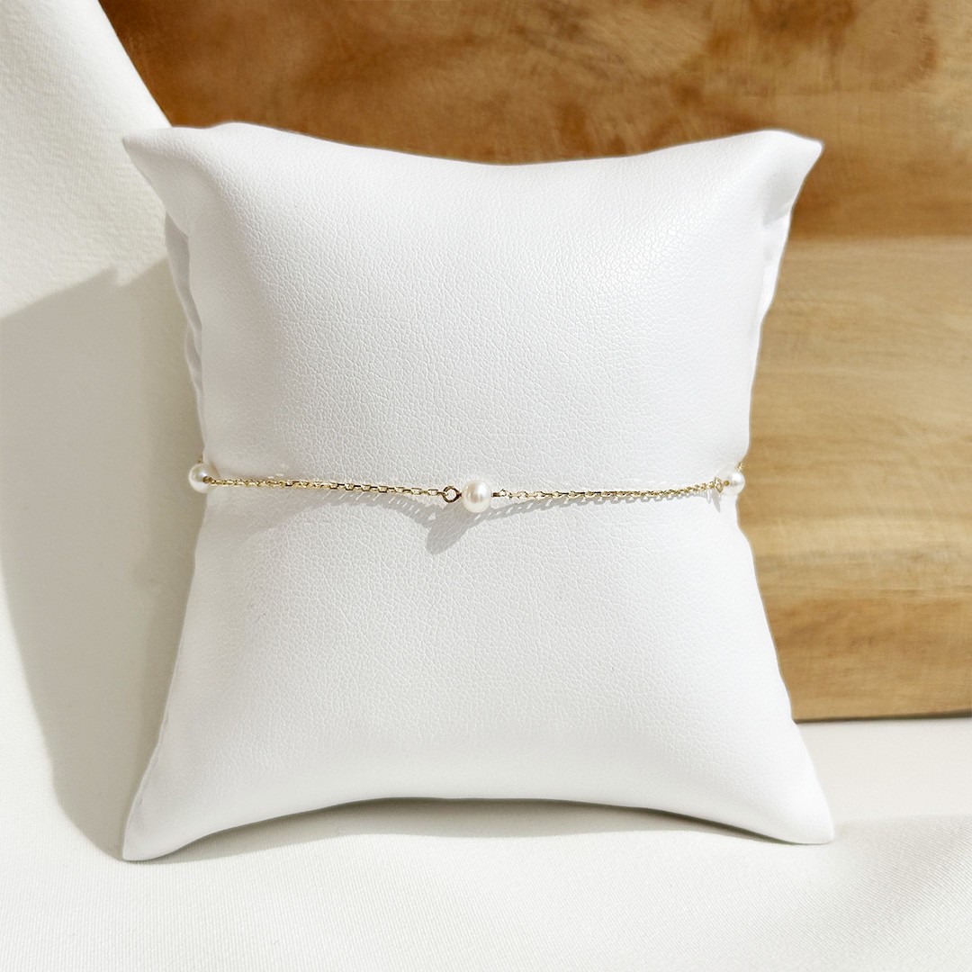 Dieses Armband aus 585er Gelbgold hat eine Länge von 19cm und bezaubert durch die Kombination von feiner Gliederkette und zarten Süßwasserperlen, die in regelmäßigen Abständen eingearbeitet sind. Das Zusammenspiel von warmem Gold und dem sanften Schimmer der Perlen wirkt besonders schmeichelnd und verleiht dem Schmuckstück eine elegante, zugleich jugendliche Note. Leicht und dezent gearbeitet, ist es ein entzückendes Armband für junge Damen, das sich wunderbar im Alltag tragen lässt und auch zu besonderen Anlässen eine feine Wahl ist.