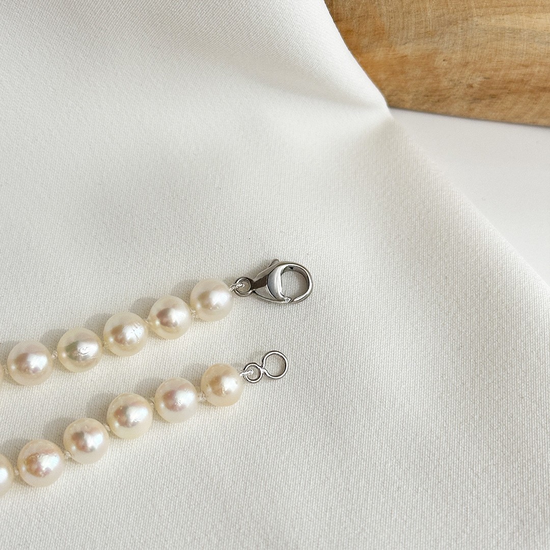 Dieses elegante Armband besticht durch Akoyaperlen mit einer Größe von 6 bis 7mm und einem sanften, leicht roséfarbenen Schimmer – ein besonders geschätztes Merkmal dieser Perlenart. Mit einer Länge von 19cm liegt es geschmeidig am Handgelenk und lässt sich dank des Karabiners aus 925 Silber mühelos schließen. Es wirkt fein und edel zugleich und harmoniert wunderbar mit weiterem Perlenschmuck. Ein vielseitiges Schmuckstück, das jedem Stil eine klassische Note verleiht.