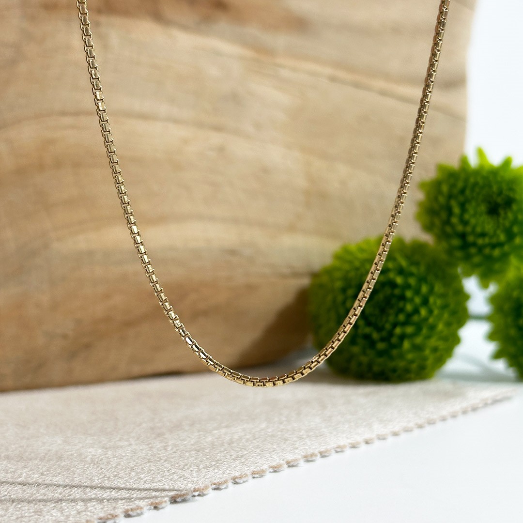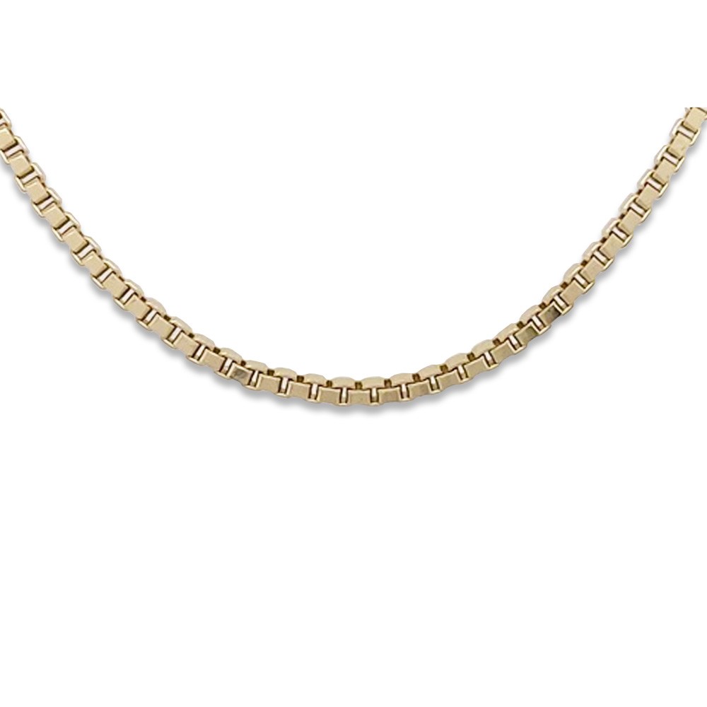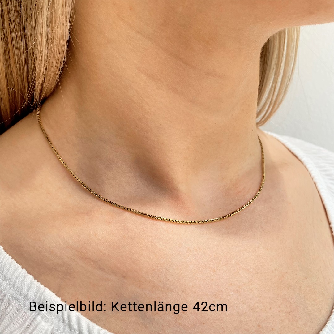 585 Gelbgold Venezianerkette im V-Schliff in der Länge 40cm und 1,1mm Stärke – hergestellt in Österreich. Die Venezianerkette aus 585er Gelbgold ist ein klassisches Schmuckstück, das sowohl von Damen als auch Herren gerne getragen wird. Ihre besondere Optik entsteht durch die eckigen Glieder, die sich horizontal und vertikal ineinander fügen. Diese Kette zählt zu den beliebtesten Standard-Goldketten für Anhänger, da sie zeitlos, elegant und vielseitig einsetzbar ist. Tipp zur Kettenlänge: Als Orientierung gelten folgende Standardlängen – für Damen meist 42–45cm, für Herren 50–60cm und für Kinder etwa 36–40cm.