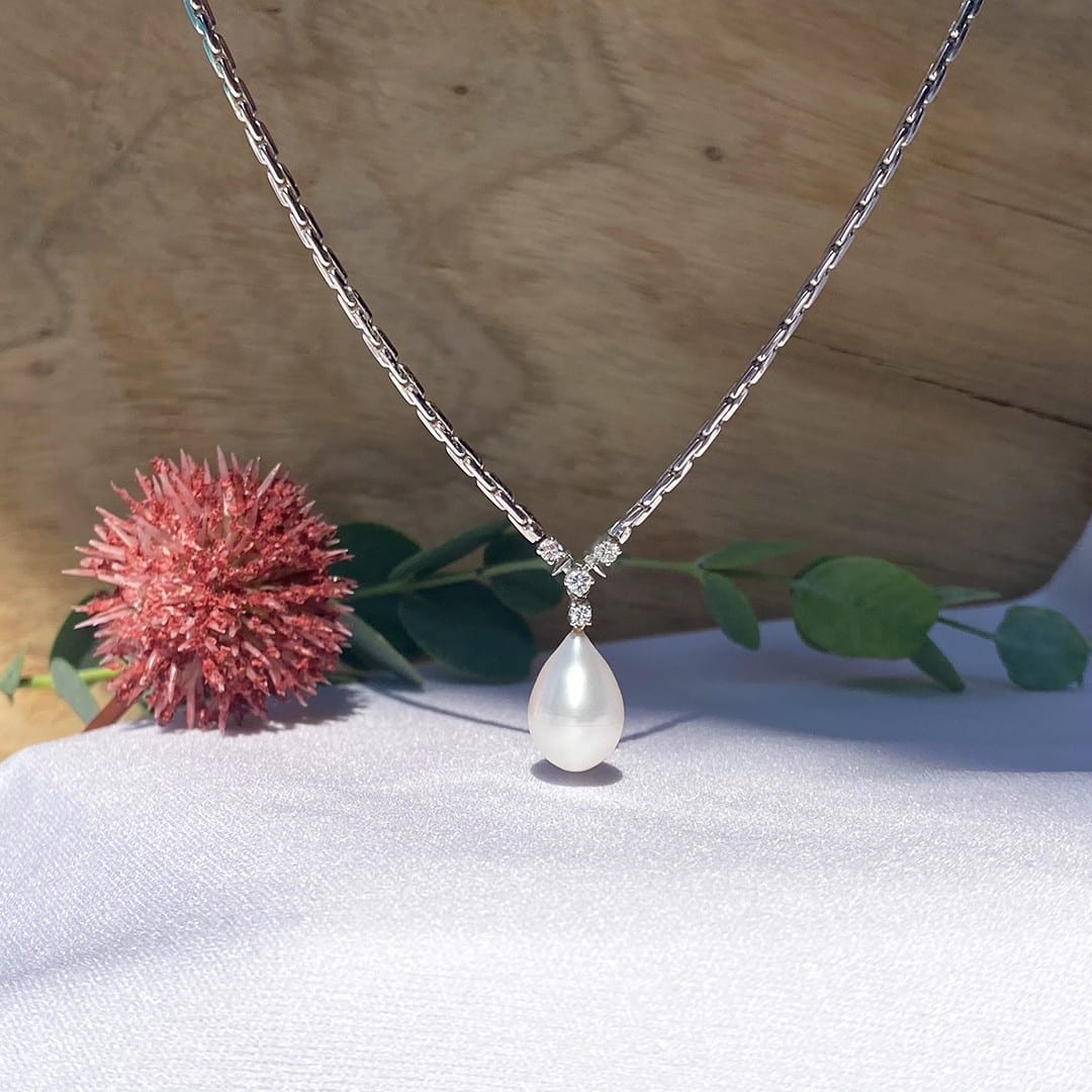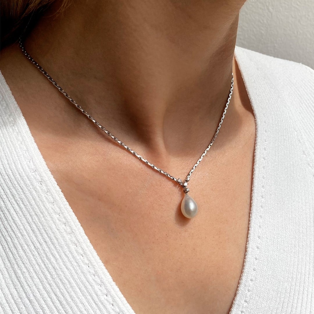 Dieses Collier aus 585er Weißgold verbindet zeitlose Eleganz mit feinen Details. Eine tropfenförmige Süßwasserperle bildet den sanften Mittelpunkt des Designs und wird von vier kleinen Zirkonia-Steinen begleitet, die für ein zartes Funkeln sorgen. Die Kombination aus dem kühlen Glanz des Weißgolds und dem edlen Perlenschimmer macht dieses Schmuckstück zu einem stilvollen Begleiter – ob für besondere Momente, als zurückhaltender Brautschmuck oder einfach, um dem Alltag eine elegante Note zu verleihen. Mit seiner feinen Ausstrahlung ist dieses Collier ein liebevoller Akzent, der sich harmonisch kombinieren lässt und immer eine besondere Wirkung entfaltet.