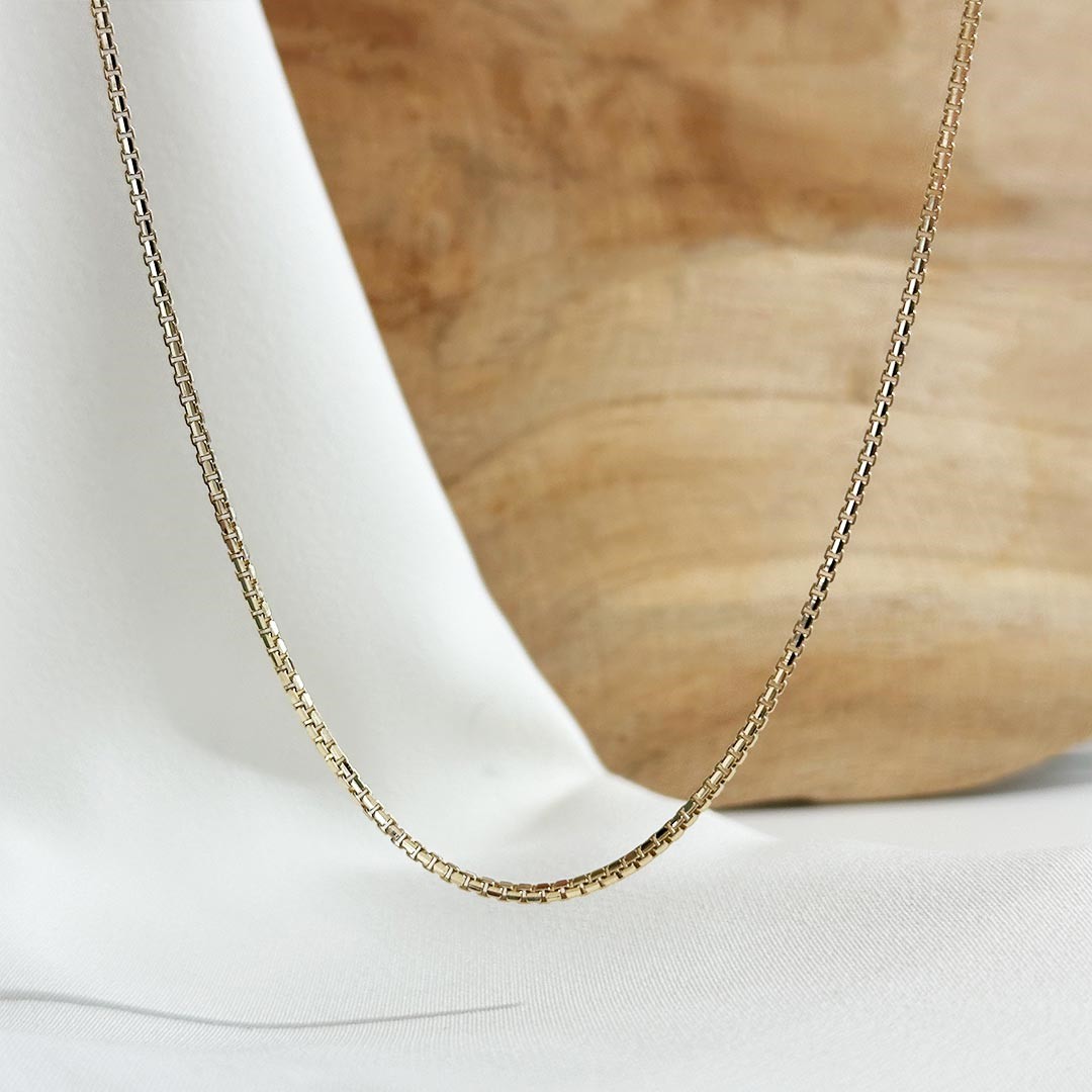 Diese Venezianerkette aus 585er Gelbgold mit einer Länge von 42cm und einer Stärke von 1,5mm ist ein zeitloser Klassiker. Die eckigen Glieder fügen sich präzise aneinander und schaffen die charakteristische, geradlinige Optik dieser beliebten Kettenart. Der feine V-Schliff sorgt für eine sanfte, schmeichelnde Wirkung am Hals und verleiht der Kette einen besonders eleganten Ausdruck – ohne dabei an Klarheit zu verlieren. Diese Kette ist sowohl bei Damen als auch Herren beliebt und in weiteren Längen und Stärken erhältlich. Tipp zur Kettenlänge: Als Orientierung gelten folgende Standardlängen – für Damen meist 42–45cm, für Herren 50–60cm und für Kinder etwa 36–40cm.