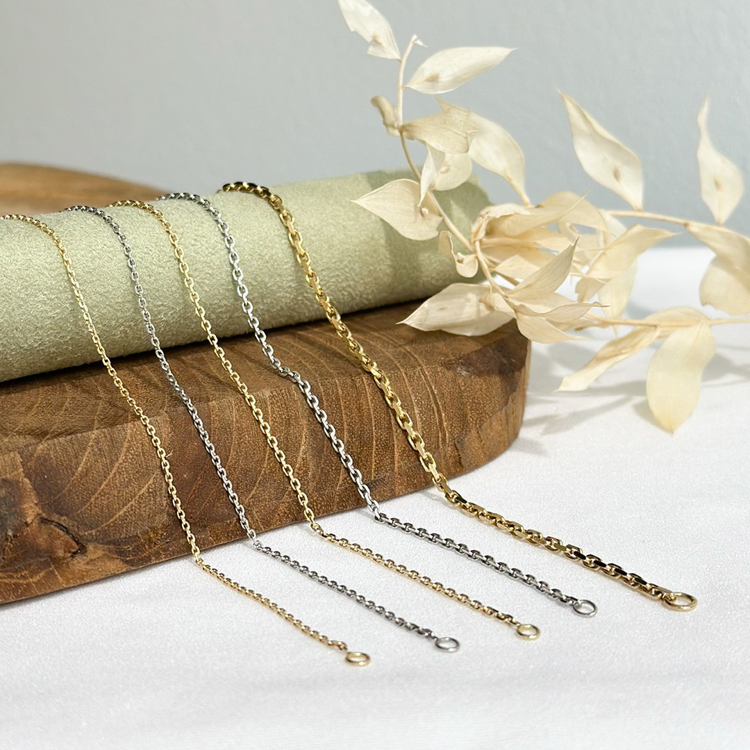 Goldkette aus 585 Weißgold mit einer Länge von 42cm und 0,9mm Stärke für Damen. Für Herren empfehlen wir Kettenlängen ab 50cm. Karreeketten zählen zu unseren beliebtesten Standard-Goldketten, denn die elegante und schmeichelnde Gliederkette eignet sich ideal für so gut wie jede Art von Anhänger. Ihre oval facettierten Glieder begünstigen bei optimalem Lichteinfall ein feines Funkeln der Goldkette. Dadurch kommt die Karreekette auch ohne Anhänger getragen optimal zur Wirkung. Unsere Standard-Goldketten werden in Österreich hergestellt und sind in 585 oder 750 Gelb-, Weiß- und Roségold in verschiedenen Längen und Stärken erhältlich.