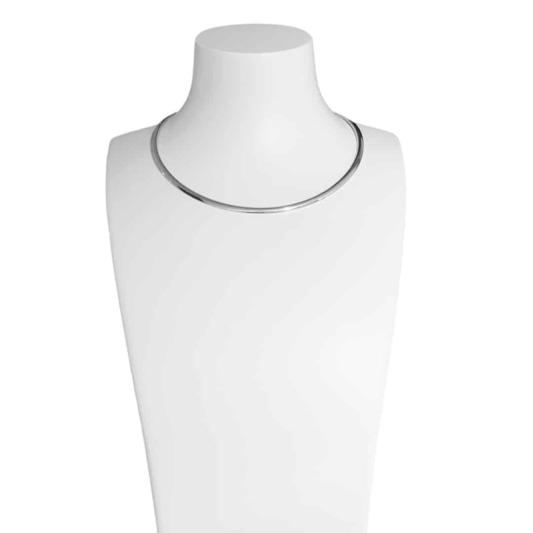Dieser Halsreif aus 585er Weißgold hat eine Länge von 43cm und eine markante Breite von 4mm. Durch die sanft gewölbte Ausführung legt er sich angenehm an den Hals und bewahrt dank seiner formstabilen Fertigung dauerhaft seine elegante Rundung. Das schlichte, klare Design lässt dem Anhänger den nötigen Raum zur Entfaltung, kann aber ebenso gut solo getragen werden. Seine zurückhaltende Präsenz macht ihn zu einem vielseitigen Schmuckstück – ob im Alltag oder zu festlichen Anlässen. Besonders harmonisch wirkt er in Kombination mit klassischem Brillantohrschmuck oder einer schlichten Perlenkette.