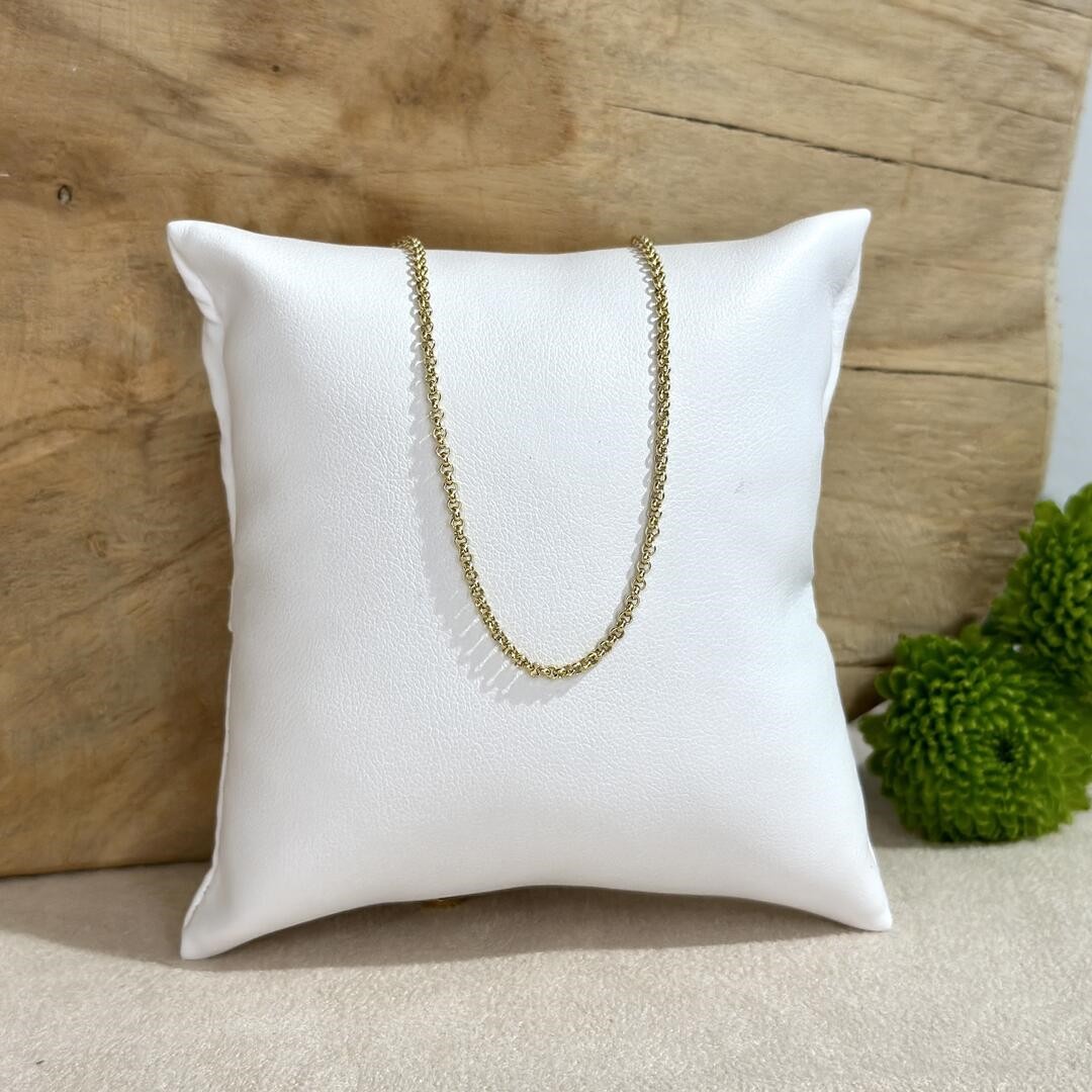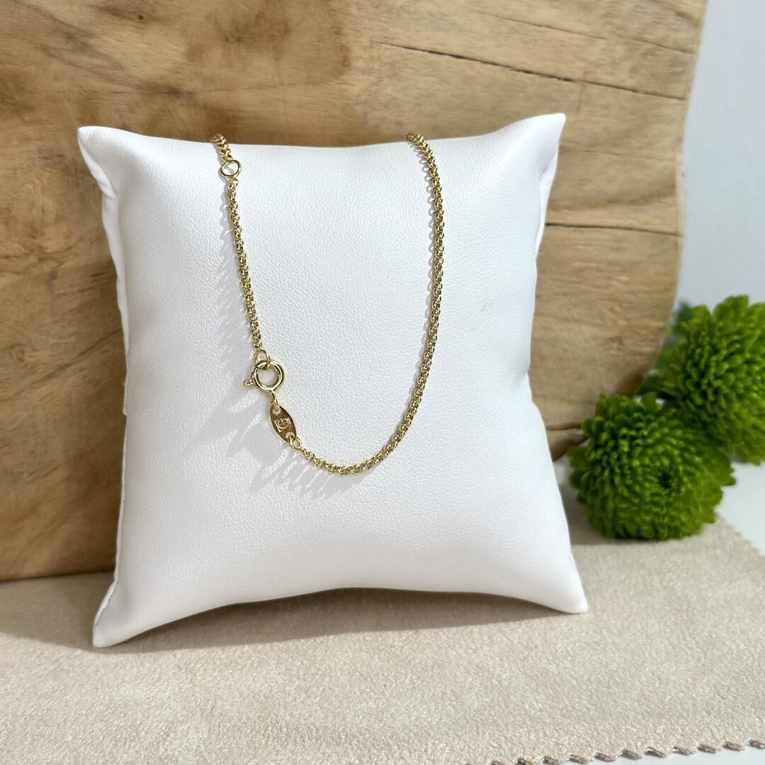 Diese Erbskette aus 750 Gelbgold überzeugt durch ihre runden Glieder und die zarte, schmeichelnde Optik. Mit einer Stärke von 1,7mm ist sie solide, wirkt aber dennoch fein und dezent. Die Kette misst 45cm in der Länge und verfügt über eine zusätzliche Öse bei 42cm, um die Tragehöhe des Anhängers individuell anpassen zu können. Ihre zeitlose Eleganz macht sie zum idealen Schmuckstück für jeden Anlass. Diese Kette ist selbstverständlich auch in anderen Längen und Stärken erhältlich. Tipp zur Kettenlänge: Als Orientierung gelten folgende Standardlängen – für Damen meist 42–45cm, für Herren 50–60cm und für Kinder etwa 36–40cm.