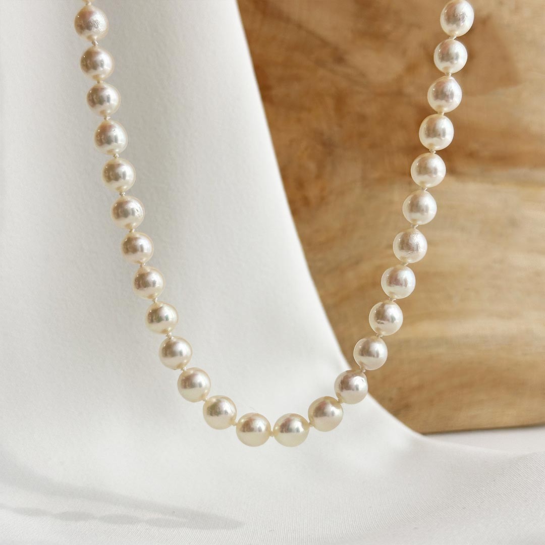 Diese 45cm lange Akoya-Perlenkette überzeugt durch ihre klassische Ausstrahlung und feine Zurückhaltung. Die Perlen mit einem Durchmesser von 6 bis 6,5mm zeigen ein zartes, natürliches Lüster und reihen sich harmonisch aneinander. Abgerundet wird das Design durch eine polierte 585 Gelbgold Magnetschließe in 8mm, die sich dezent einfügt und zugleich praktischen Komfort bietet. Die Kette schmeichelt durch ihre schlichte Eleganz und lässt sich mühelos sowohl im Alltag als auch zu festlichen Anlässen tragen. Ein zeitloses Schmuckstück, das durch seine unaufdringliche Präsenz besticht und der Trägerin eine stilvolle Note verleiht.