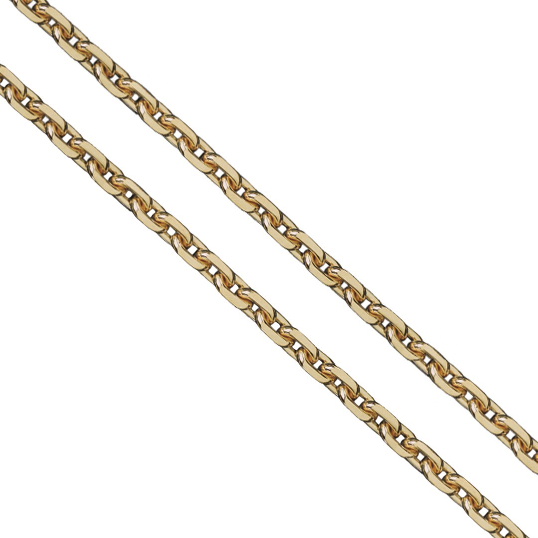 Goldkette aus 585 Gelbgold mit einer Länge von 55cm und 1,3mm Stärke. Karreeketten zählen zu unseren beliebtesten Standard-Goldketten, denn die elegante und schmeichelnde Gliederkette eignet sich ideal für so gut wie jede Art von Anhänger. Ihre oval facettierten Glieder begünstigen bei optimalem Lichteinfall ein feines Funkeln der Goldkette. Dadurch kommt die Karreekette auch ohne Anhänger getragen optimal zur Wirkung.