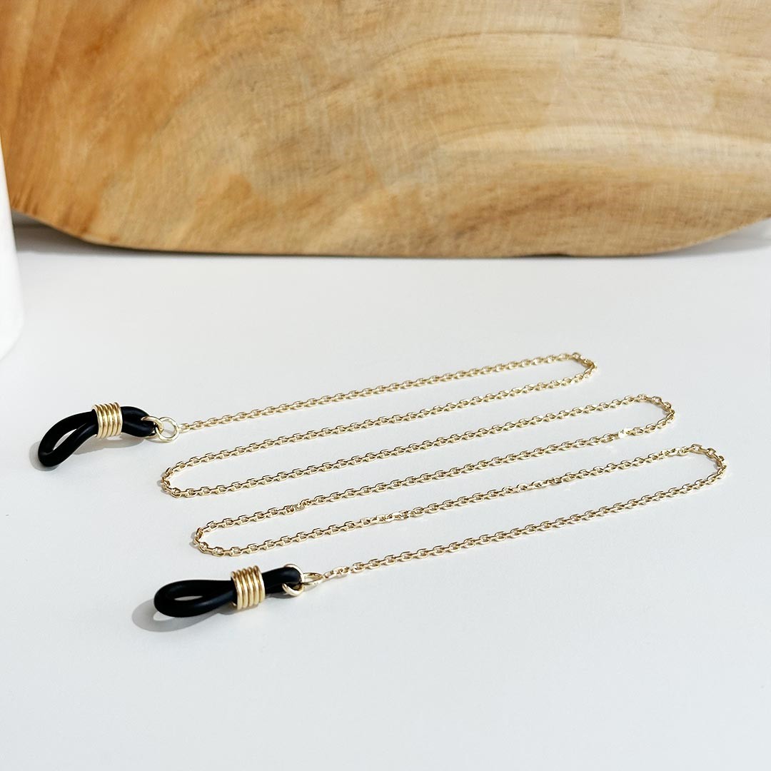 Diese Brillenkette aus 585 Gelbgold besteht aus einer 60cm langen Karreekette mit einer Stärke von 1,5mm – eine beliebte Gliederform, die durch ihre klaren Linien und zeitlose Optik besticht. Sie lässt sich vielseitig kombinieren und fügt sich mühelos in unterschiedliche Stilrichtungen ein. Die schwarzen Brillengummis sind mit einer feinen Goldumwicklung aus 585er-Gold versehen und lassen sich individuell anpassen, sodass sie sicheren Halt an den Brillenbügeln bieten. Diese Kombination aus Funktionalität und klassischem Design macht die Kette zu einem stilvollen Begleiter mit zurückhaltender Eleganz. Auf Wunsch fertigen wir dieses Modell auch in anderen Längen und Stärken.
