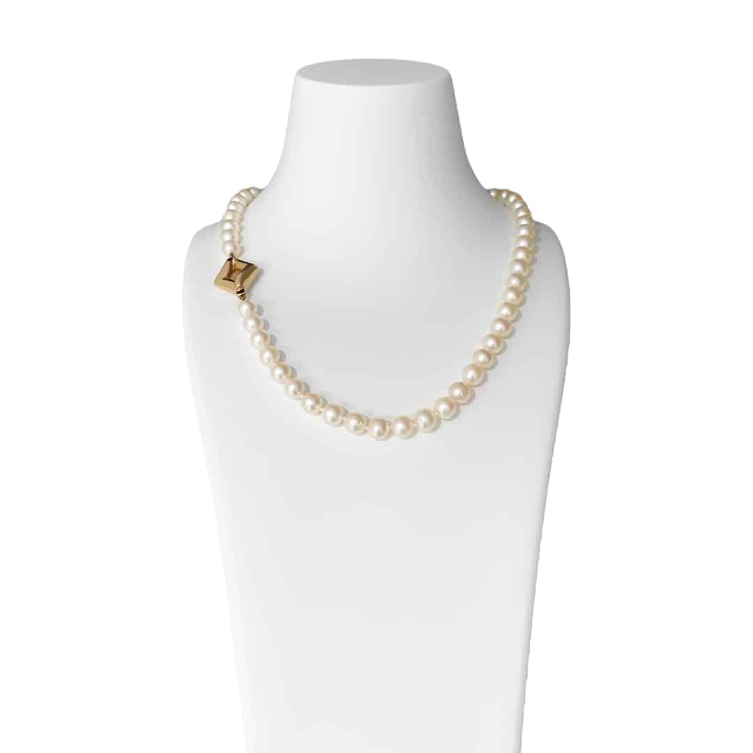 Unsere 43 cm lange Akoyaperlenkette mit einer Perlengröße von 7-7,5 mm ist ein zeitloser Klassiker mit einem besonderen Highlight – der seitlich getragenen Goldschließe. Die viereckige Form dieser Schließe durchbricht das klassische Design und verleiht der Kette eine moderne Note. Kombinieren Sie diese einzigartige Perlenkette mit Goldohrsteckern oder klassischen Perlenohrsteckern aus unserem Sortiment, um Ihren individuellen Stil zu unterstreichen. Diese Kette ist perfekt für jeden Anlass geeignet, sei es im Alltag oder zu besonderen Veranstaltungen. Wir bieten Ihnen auch die Möglichkeit, die Kette zu kürzen oder zu verlängern, damit sie perfekt um Ihren Hals liegt und Ihren persönlichen Tragekomfort gewährleistet. Entdecken Sie die zeitlose Eleganz und das besondere Design dieser Akoyaperlenkette und bereichern Sie Ihren Schmuckstil mit diesem faszinierenden Schmuckstück.
