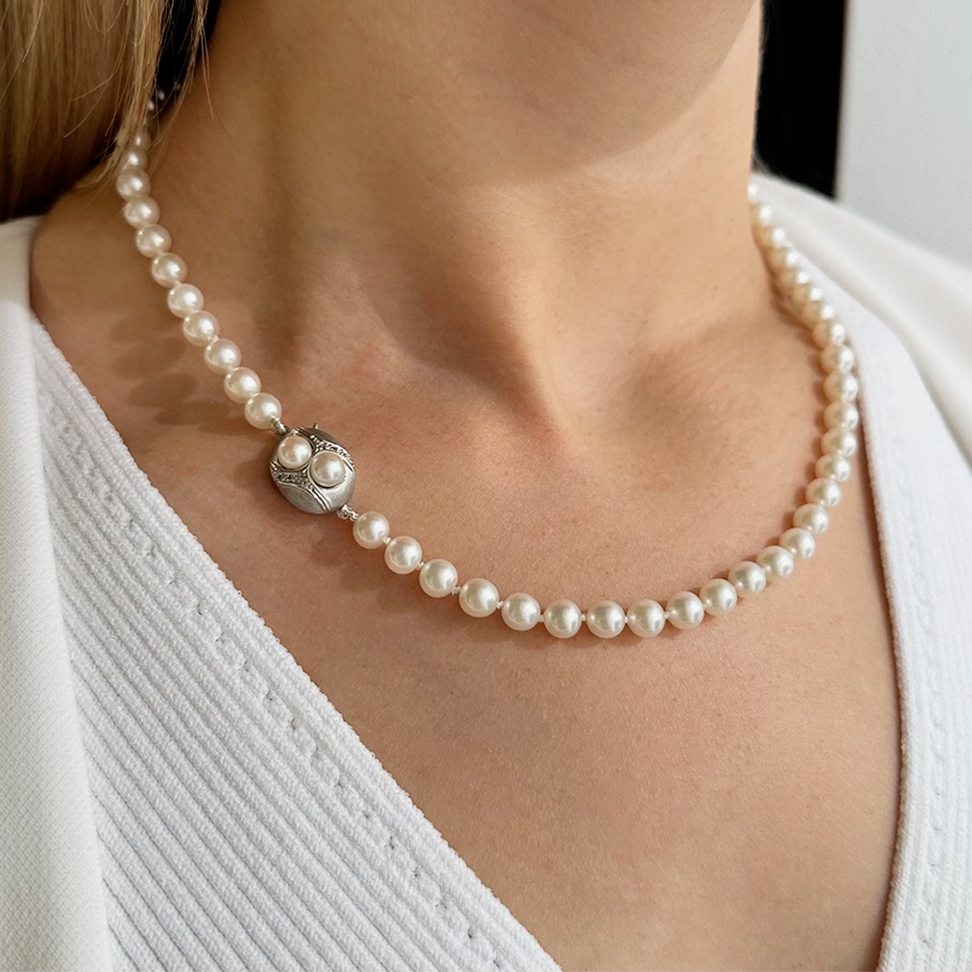 Akoyaperlenkette mit 585 Weißgold Perlenschließe PX-115