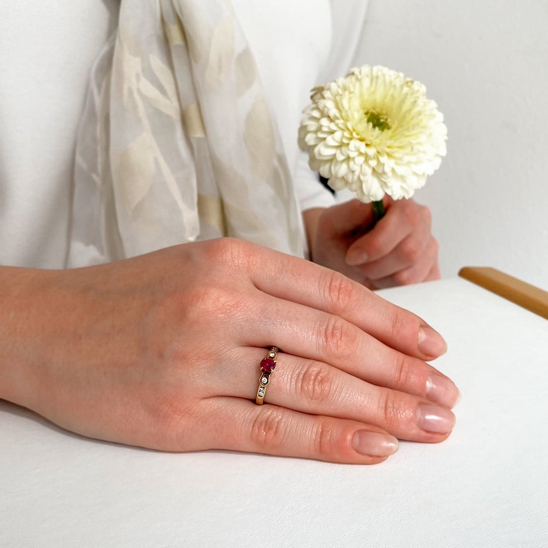 | Besatz | 0,45ct. Rubin und 0,14ct. Brillant Hsi |