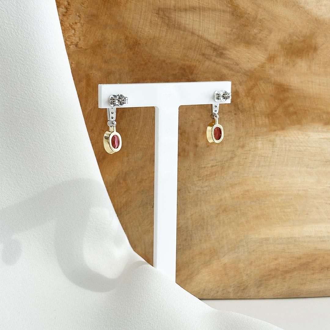 Diese eleganten Ohrgehänge aus 585 Gelbgold und Weißgold wurden von unserem Goldschmied handgefertigt. Entlang des Steckers sind Brillanten im Größenverlauf gefasst, wobei die kühle Ausstrahlung des Weißgoldes das Funkeln zusätzlich betont. Den Abschluss bildet ein ovaler rosa-rot schimmernder Turmalin, der glatt und rundum in Gelbgold eingefasst ist. Mit einer Länge von 20mm sind die Ohrgehänge fein und doch ausdrucksstark – für alle, die besonderen Schmuck mit klarer Formensprache schätzen. Passend dazu ist auch ein Anhänger erhältlich.