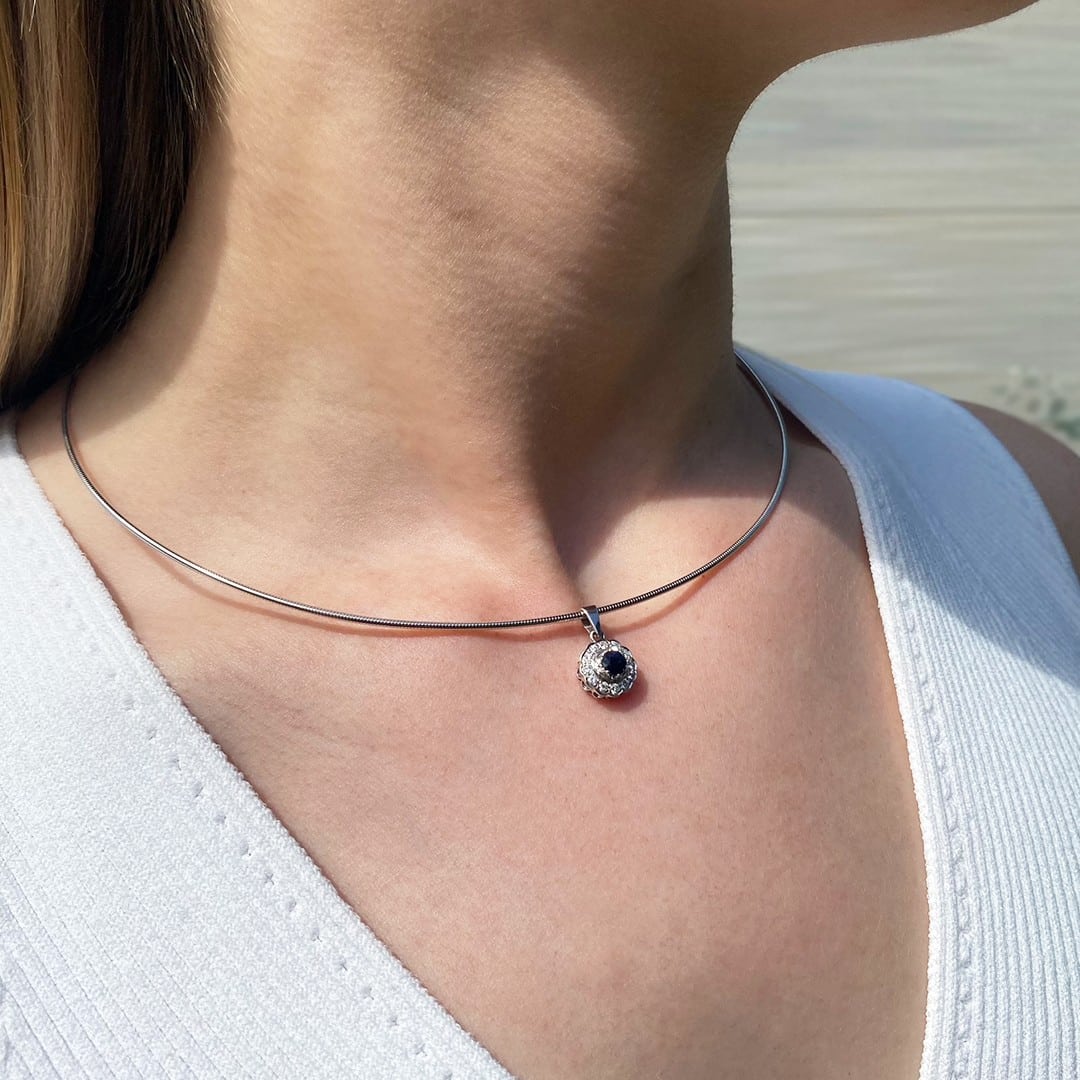Dieser klassische Anhänger aus 585er Weißgold verkörpert zeitlose Raffinesse. Im Zentrum des runden Designs sitzt ein tiefblauer Saphir, der von fein gefassten Brillanten umrahmt wird – eine stilvolle Komposition, die seit jeher für Zurückhaltung mit Wirkung steht. Mit einem Durchmesser von ca. 10mm bleibt der Anhänger dezent, zieht aber dennoch die Blicke auf sich. Je nach Vorliebe lässt er sich wunderbar an einem feinen Halsreif oder an einer zweireihigen Kette tragen – beides unterstreicht auf unterschiedliche Weise seinen edlen Charakter. Ein vielseitig tragbares Schmuckstück, das mühelos zwischen Alltag und Anlass wechselt.