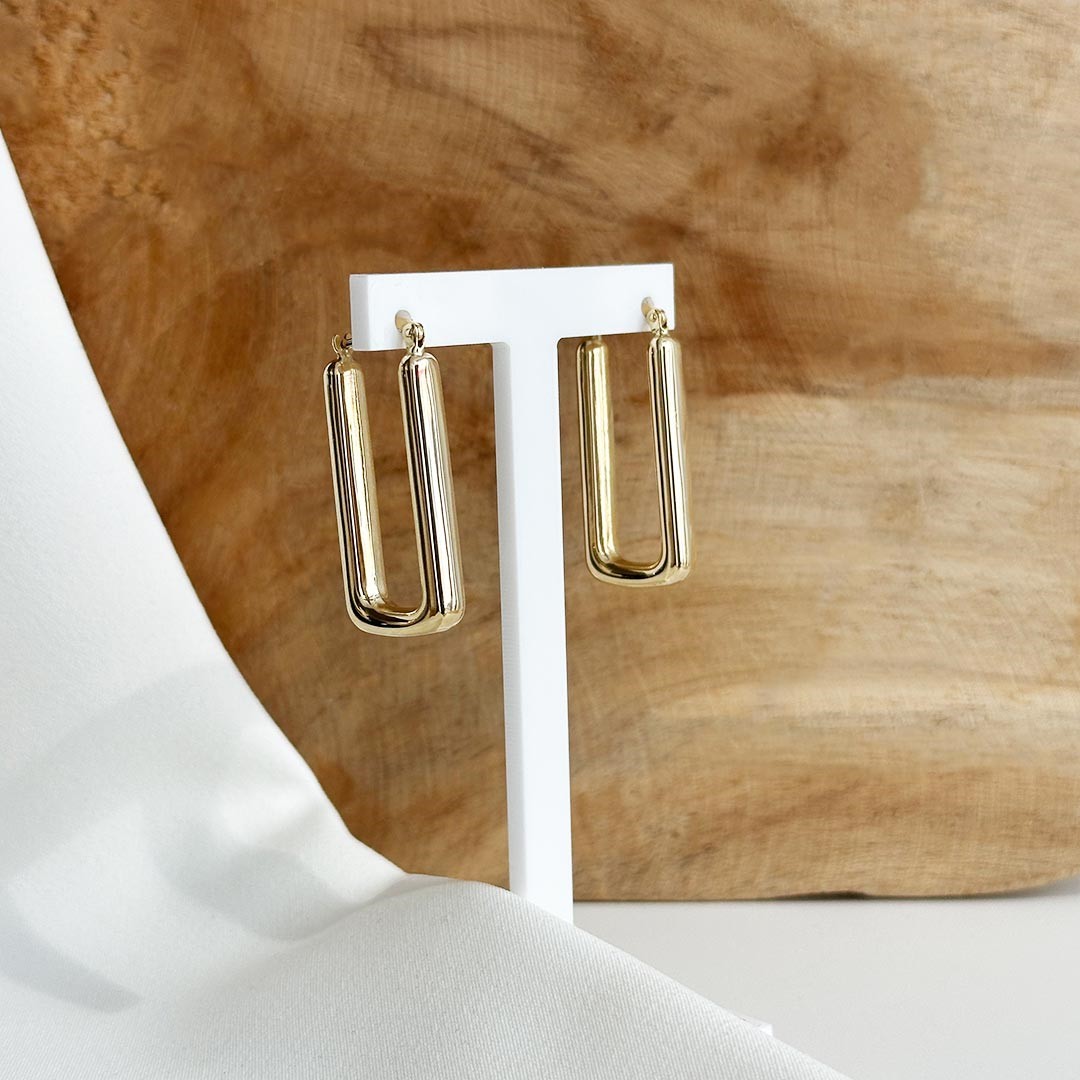 Diese Creolen aus 585er Gelbgold verbinden das angesagte Paperclip-Design mit zeitloser Eleganz und klarer Formensprache. Mit einer Länge von 30mm zeigen sie sich in stilvoller, länglicher Silhouette und wirken zugleich puristisch und modern. Dank ihrer leichten Verarbeitung bieten sie angenehmen Tragekomfort – ideal für den Alltag wie auch für besondere Anlässe. Bei jeder Bewegung fängt das Gold das Licht ein und verleiht den Creolen eine lebendige Ausstrahlung. Ein zeitgemäßes Schmuckstück, das durch Raffinesse und Zurückhaltung überzeugt.