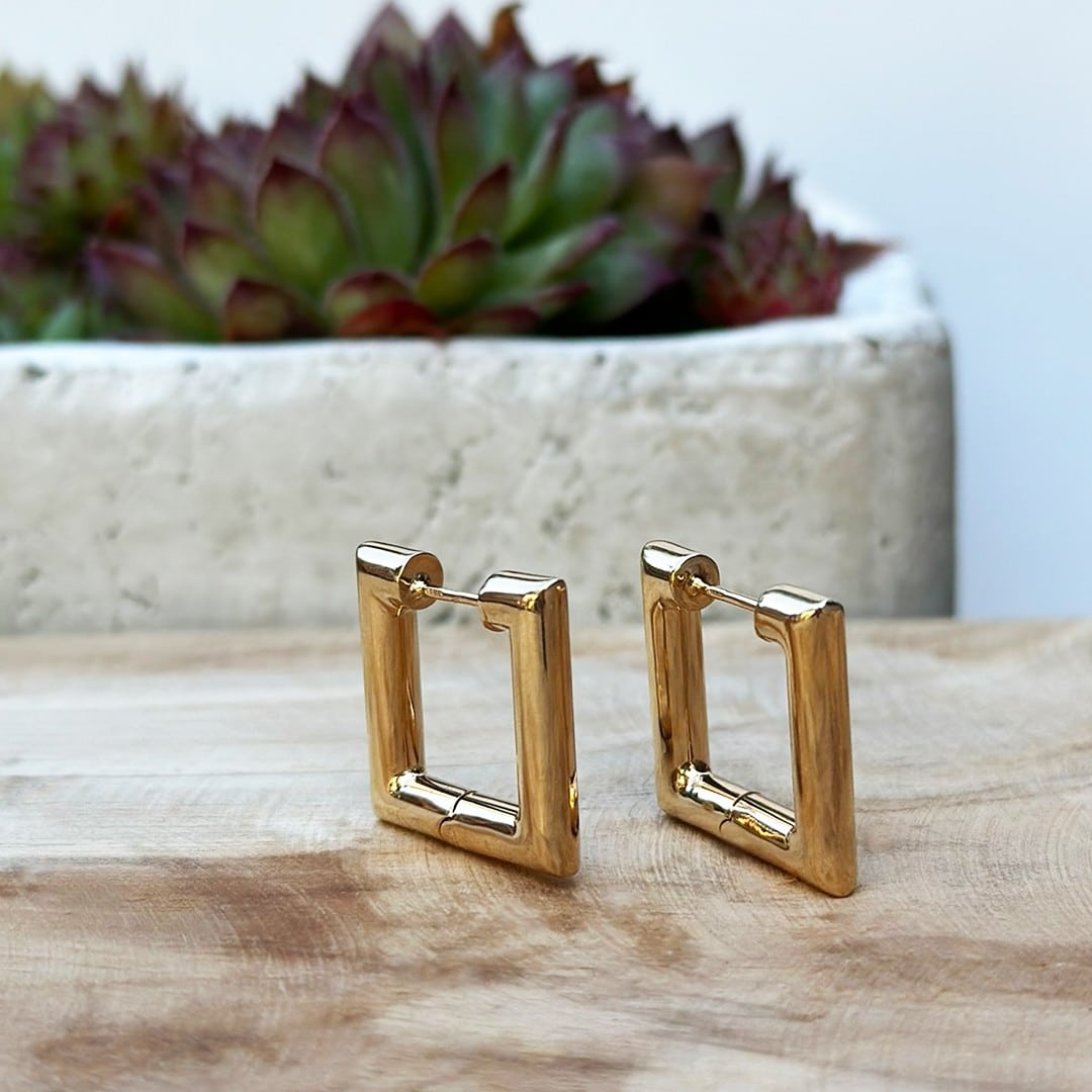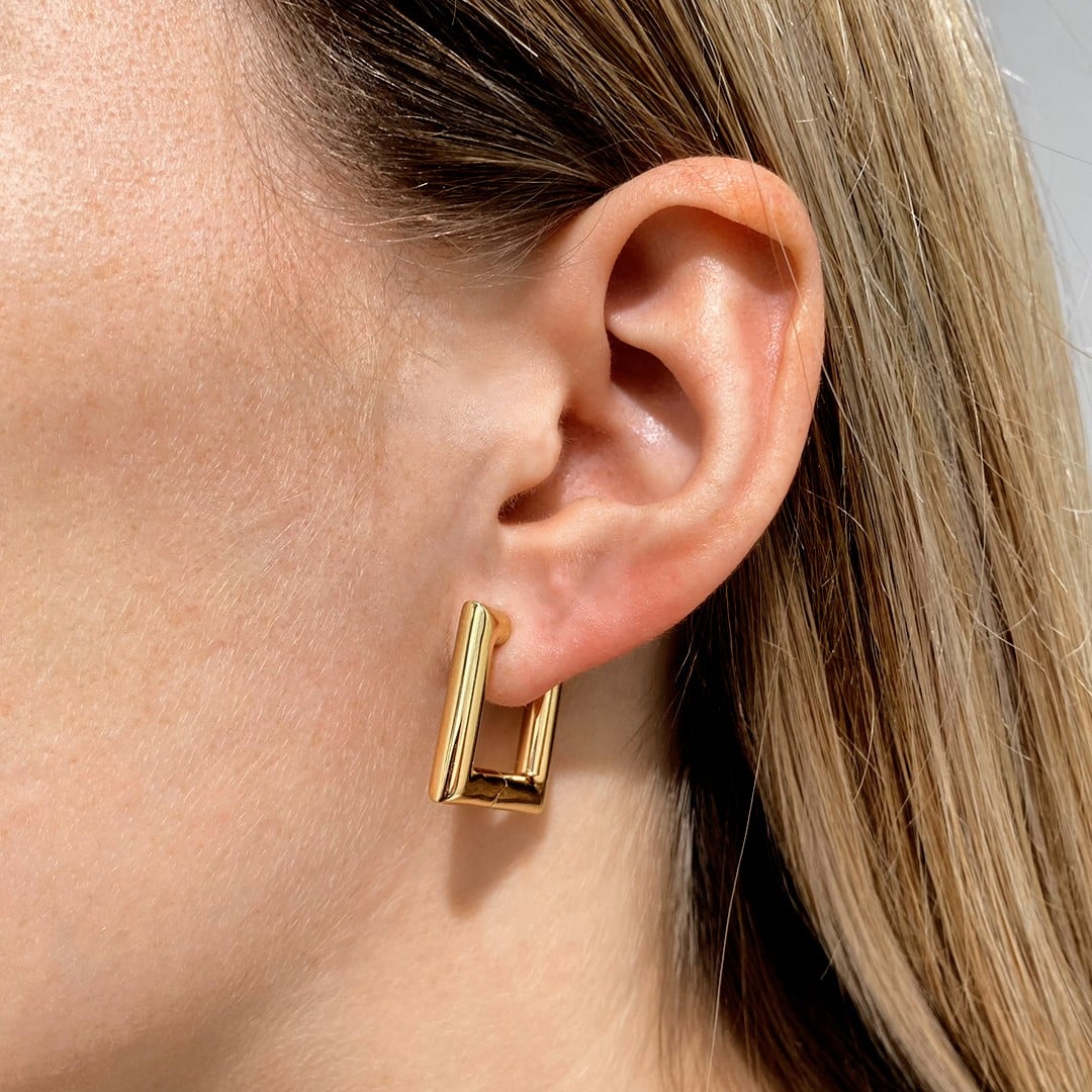 Diese eckigen Creolen aus 585er Gelbgold beeindrucken mit ihrer klaren Formensprache und einem modernen, selbstbewussten Design. Mit einer Größe von 4cm ziehen sie mühelos die Blicke auf sich und verleihen jedem Outfit eine stilvolle Note – ganz gleich, ob im Alltag, im Büro oder am Abend. Die geradlinige Silhouette bringt eine zeitgemäße Eleganz ans Ohr, ohne aufdringlich zu wirken. Ein ausdrucksstarker Ohrschmuck für alle, die klare Linien und präsente Formen schätzen.