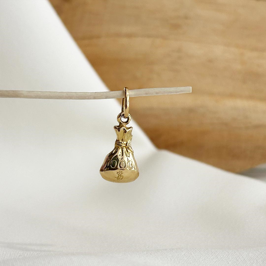 Unser Geldsack-Anhänger aus 585 Gelbgold ist die perfekte Ergänzung für jedes Bettelarmband. Dieses Schmuckstück besticht durch seine detailreiche Ausführung und den warmen Glanz des Gelbgolds. Der Anhänger mit einer Größe von 18mm symbolisiert Wohlstand und Glück und ist damit ein wunderbares Geschenk für besondere Anlässe oder als persönliche Belohnung. Selbstverständlich finden Sie auch passende Gold-Bettelarmbänder in unserem Sortiment.