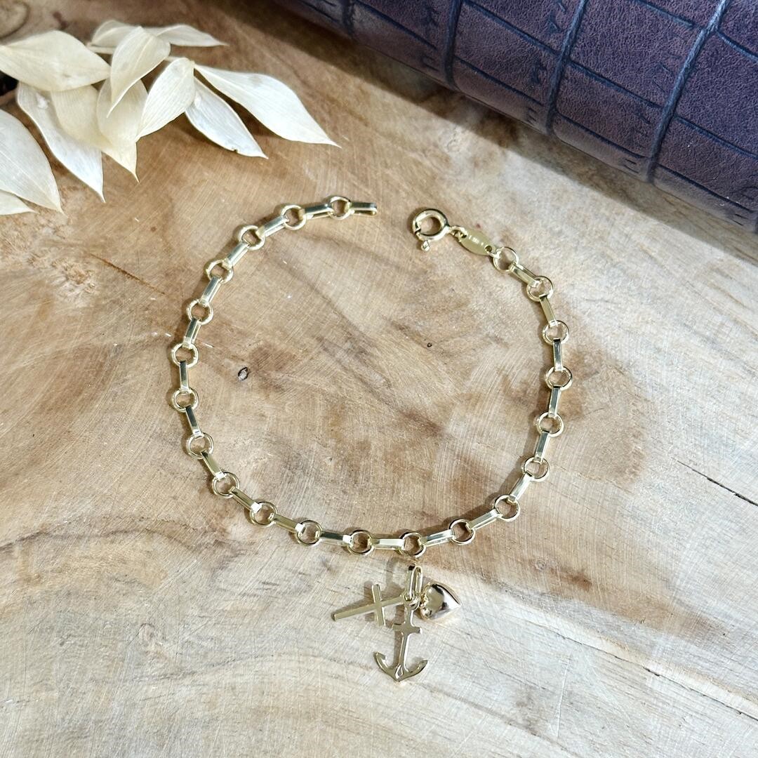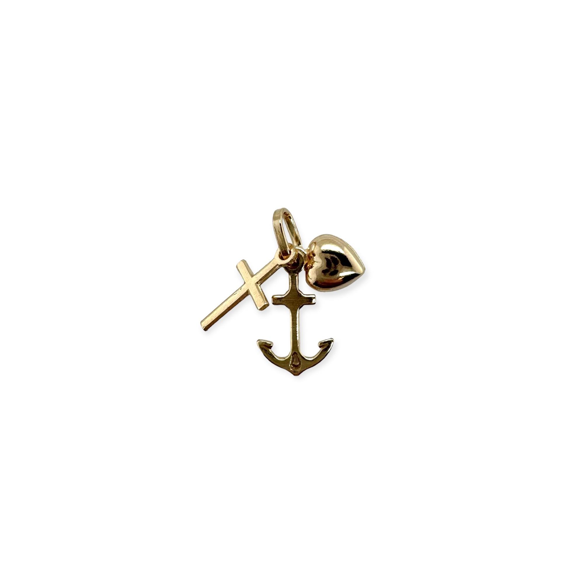 Dieser Glaube-Liebe-Hoffnung Anhänger besteht aus den drei bedeutungsvollen Symbolen – Anker, Kreuz und Herz. Der Anker symbolisiert Hoffnung, das Kreuz steht für den Glauben und das Herz repräsentiert die Liebe. Zusammen bilden sie eine starke Botschaft der Verbundenheit und des Vertrauens. Dieser Anhänger ist ein passendes Geschenk für einen besonderen Anlass wie die Taufe, die Erstkommunion, zur Firmung oder zu einem Geburtstag. Bettelarmbänder aus Gold oder eine passende Goldkette finden Sie selbstverständlich auch in unserem Sortiment. Der Anhänger hat eine Größe von ca. 15mm.