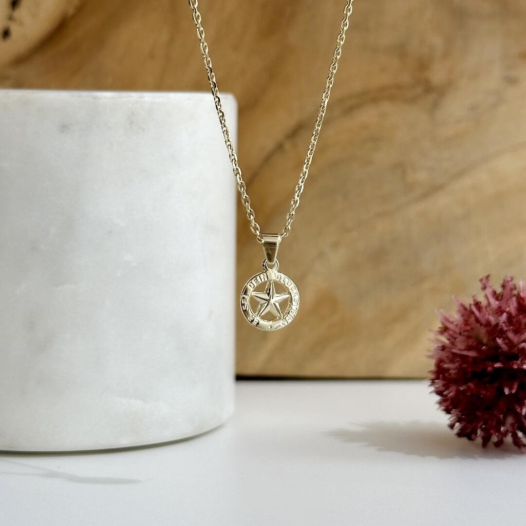 Unser Glücksstern Anhänger aus 585 Gelbgold für Mädchen und Jungen ist perfekt geeignet für Bettelarmbänder oder Halsketten. Die Gravur, außen am Rand, „Er sei dein Glücksstern“, macht diesen Anhänger zu einem persönlichen Glücksbringer. Hergestellt aus 585 Gelbgold strahlt er zeitlose Eleganz aus. Ob als Geschenk für einen besonderen Anlass oder als täglicher Begleiter, dieser Glücksstern wird das Herz jedes Kindes im Sturm erobern und ihm auf seinem Lebensweg Glück und Schutz bringen.