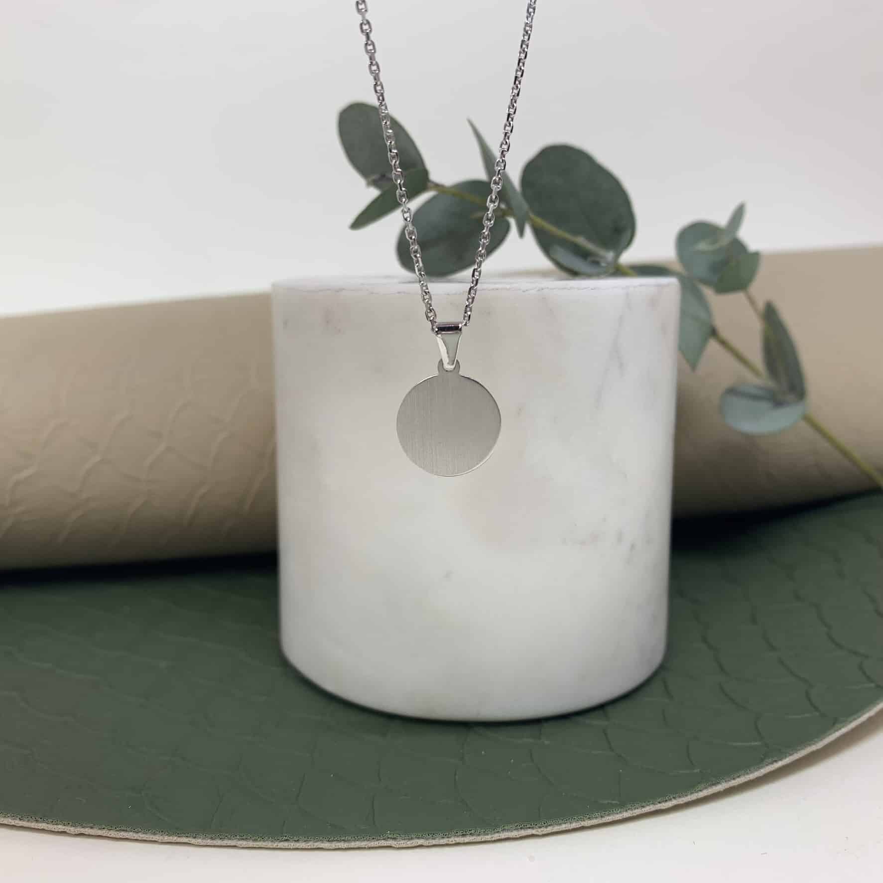 Die runde 585 Weißgold Gravurplatte hat einen Durchmesser von 12mm. Die Oberfläche ist mattiert. Unsere Gold Gravurplatten werden von uns gerne mit einer persönlichen Gravur veredelt. Sie können auch wunderbar mit anderen Schmuckanhängern kombiniert werden. In unserem Sortiment finden Sie eine große Auswahl an Goldanhängern und Goldketten. Tipp: Für Babys und Kinder empfehlen wir die Kettenlänge 36cm. Die Verlinkung zu unseren Kinder-Goldketten finden Sie gleich unterhalb der Produktbilder. Sollten Sie eine andere Kettenlänge oder Kettenart wünschen, stehen wir Ihnen gerne zur Verfügung.