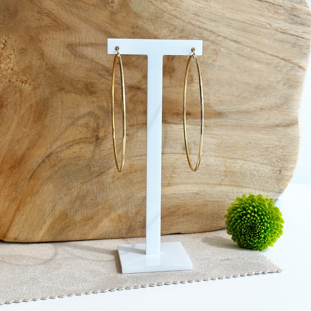 Diese runden Creolen aus 585 Gelbgold gehören zu den Klassikern im Schmuckkästchen – schlicht, großzügig und ausdrucksstark zugleich. Mit einem Durchmesser von 62mm und einer Drahtstärke von 1,5 mm sind sie fein gearbeitet, dabei aber robust genug für den täglichen Einsatz. Die klare Formgebung und das warme Gold sorgen für eine elegante Wirkung, ohne sich aufzudrängen. Ob als feiner Akzent zum Alltagslook oder als Begleiter zu besonderen Anlässen – diese Creolen setzen ein Zeichen für stilbewusste Schlichtheit. Gerne können Sie das Modell in unserem Geschäft anprobieren.