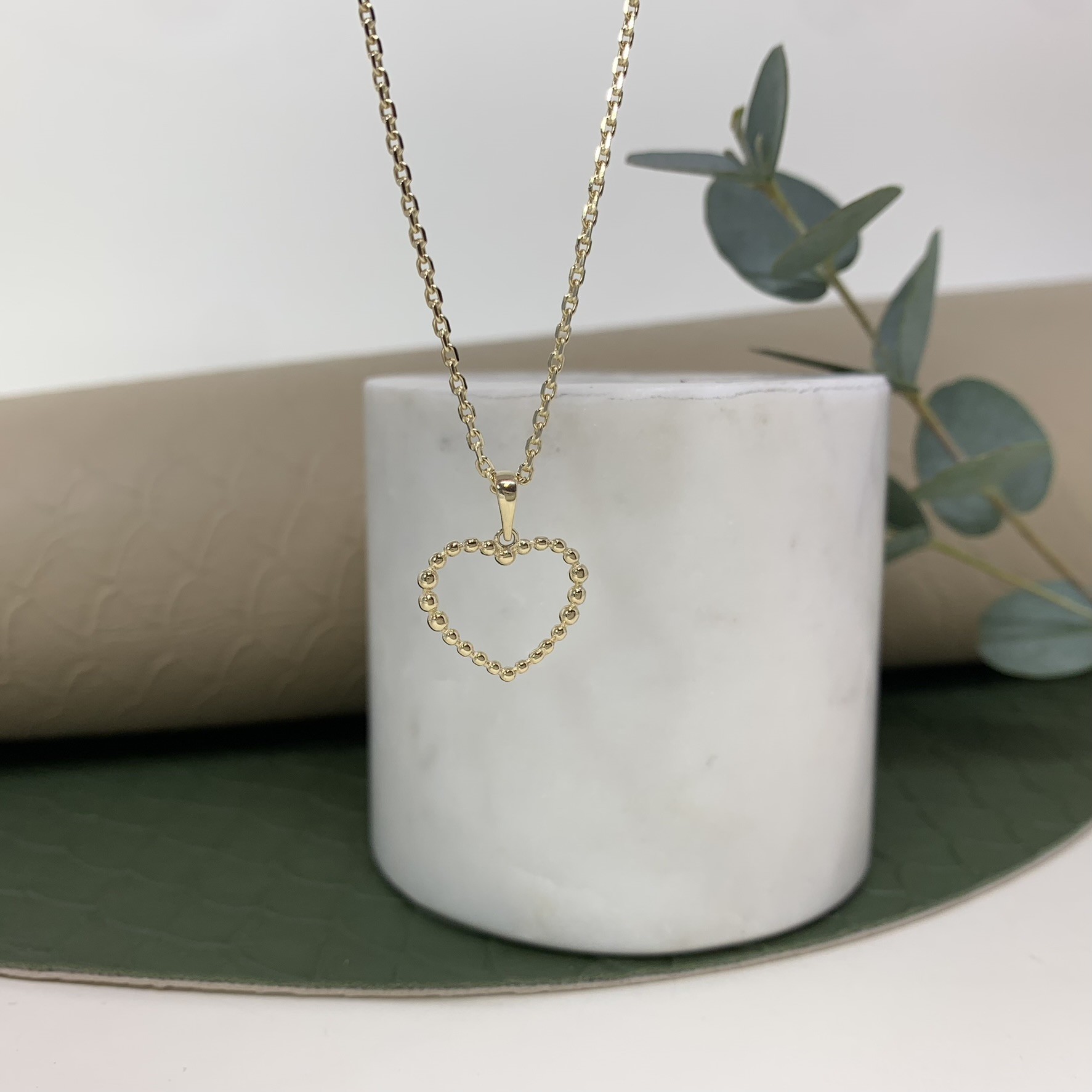 Dieser bezaubernde Herzanhänger aus 585er Gelbgold besticht durch seine filigrane Gestaltung. Mit einer Größe von 10×15 mm wirkt das Herz, als wäre es aus vielen kleinen Punkten geformt, was ihm eine besonders liebliche und verspielte Optik verleiht. Der Anhänger kann sowohl an einer zarten Halskette als auch an einem Bettelarmband getragen werden, wodurch er vielseitig einsetzbar ist. Eine passende Goldkette sowie Bettelarmbänder finden Sie selbstverständlich ebenfalls in unserem Sortiment. Ein charmantes Schmuckstück für alle, die feine und einzigartige Details lieben.