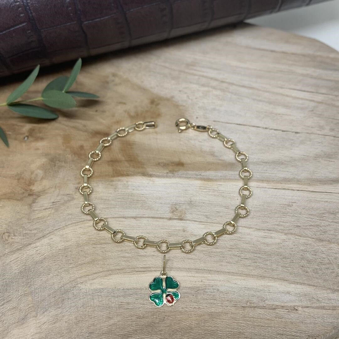 Dieser Kleeblatt Anhänger mit einem kleinen Marienkäfer steht seit jeher als Symbol für Glück. Mit einem lebendigen grünen Lacküberzug wirkt das Kleeblatt besonders authentisch und bildet einen ansprechenden Kontrast zum strahlenden Gold. Egal, ob Sie ihn an einem Bettelarmband oder einer Halskette tragen, dieser 11mm große Anhänger verleiht eine Prise Glück. Machen Sie sich bereit, das Glück in Ihr Leben zu bringen und Ihre Wünsche wahr werden zu lassen. Goldene Bettelarmbänder und eine große Auswahl an Goldketten in verschiedenen Längen finden Sie selbstverständlich auch in unserem Sortiment. Gerne verpacken wir Ihnen das Schmuckstück passend zum jeweiligen Anlass.