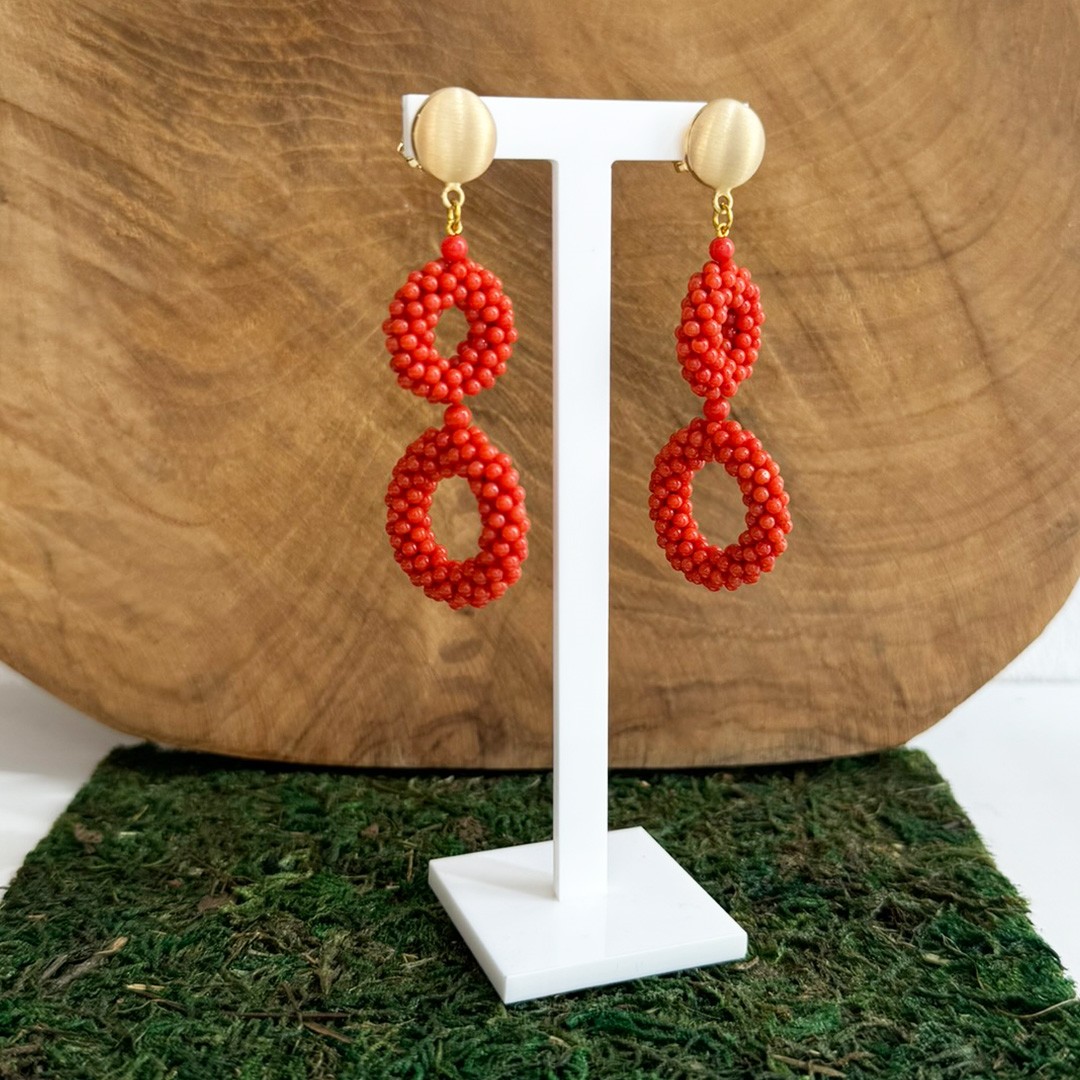 $LF$LFUnsere eleganten Ohrgehänge aus vergoldetem 925er Silber bestechen durch ihr simples und dennoch stilvolles Design. Zwei Kreise, jeweils bestehend aus vielen kleinen Korallenkugeln, formen diese Schmuckstücke und verleihen ihnen eine edle und raffinierte Ausstrahlung. Diese Ohrringe folgen dem Motto „weniger ist mehr“ und sind daher besonders vielseitig kombinierbar. Sie sind die perfekte Wahl für das Sommeroutfit im Büro, für Hochzeiten oder andere festliche Anlässe. Die warmen Farben der Korallenkugeln schmeicheln jedem Teint und fügen sich harmonisch in verschiedene Looks ein. Mit ihrem schlichten, aber eleganten Design sind diese Ohrgehänge ein wahres Highlight, das Ihrem Stil eine besondere Note verleiht. Lassen Sie sich von ihrer eleganten Schlichtheit begeistern. Die Länge beträgt ca. 70mm.