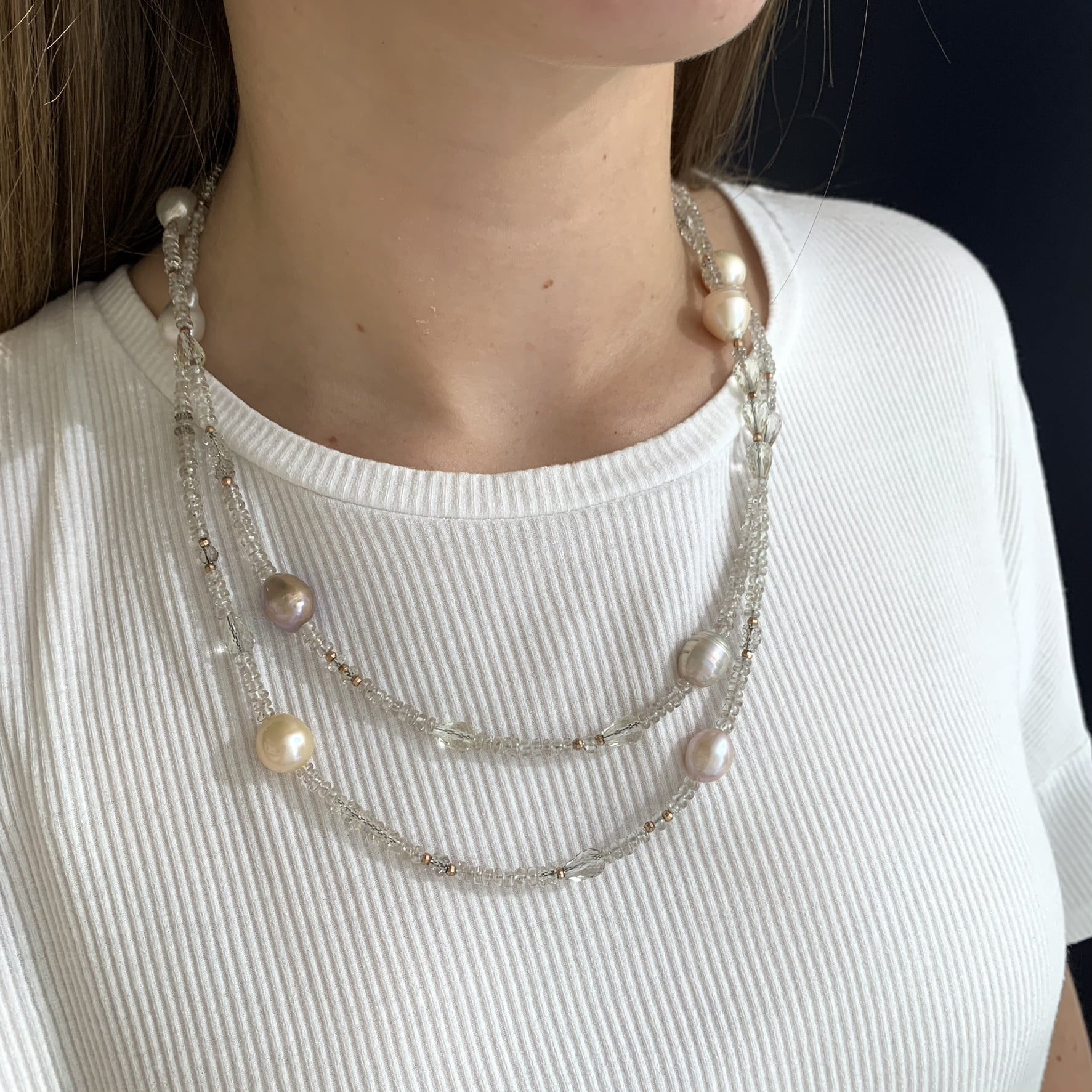 | Besatz | Süßwasser Kulturperlen, Zirkonia und Rauchquarz |