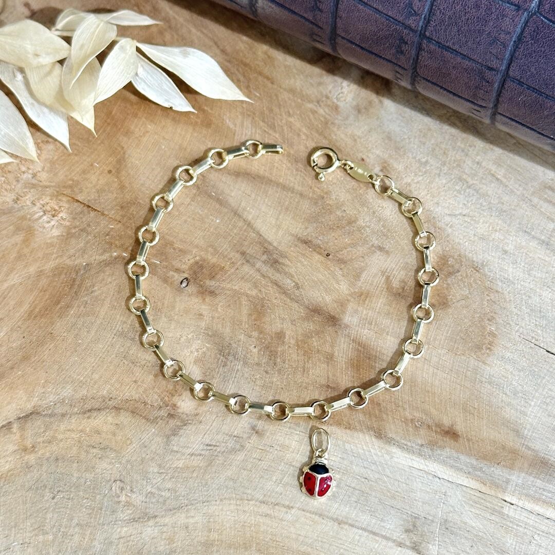 Unser entzückender Gelbgold Anhänger Marienkäfer ist speziell für Kinderbettelarmbänder oder Halsketten geeignet. Dieser niedliche Anhänger verkörpert den Charme und die Fröhlichkeit eines Marienkäfers. Hergestellt aus 585er Gelbgold, bringt er lebendige Farben ins Leben. Der Anhänger ist ein Symbol für Glück und Freude und wird jedes Kind mit seinem zauberhaften Design begeistern. Ein perfektes Accessoire, um positive Energie auszustrahlen und die freundliche Welt mit strahlendem Glanz zu erhellen. Die Größe des Anhängers beträgt ca. 9mm.