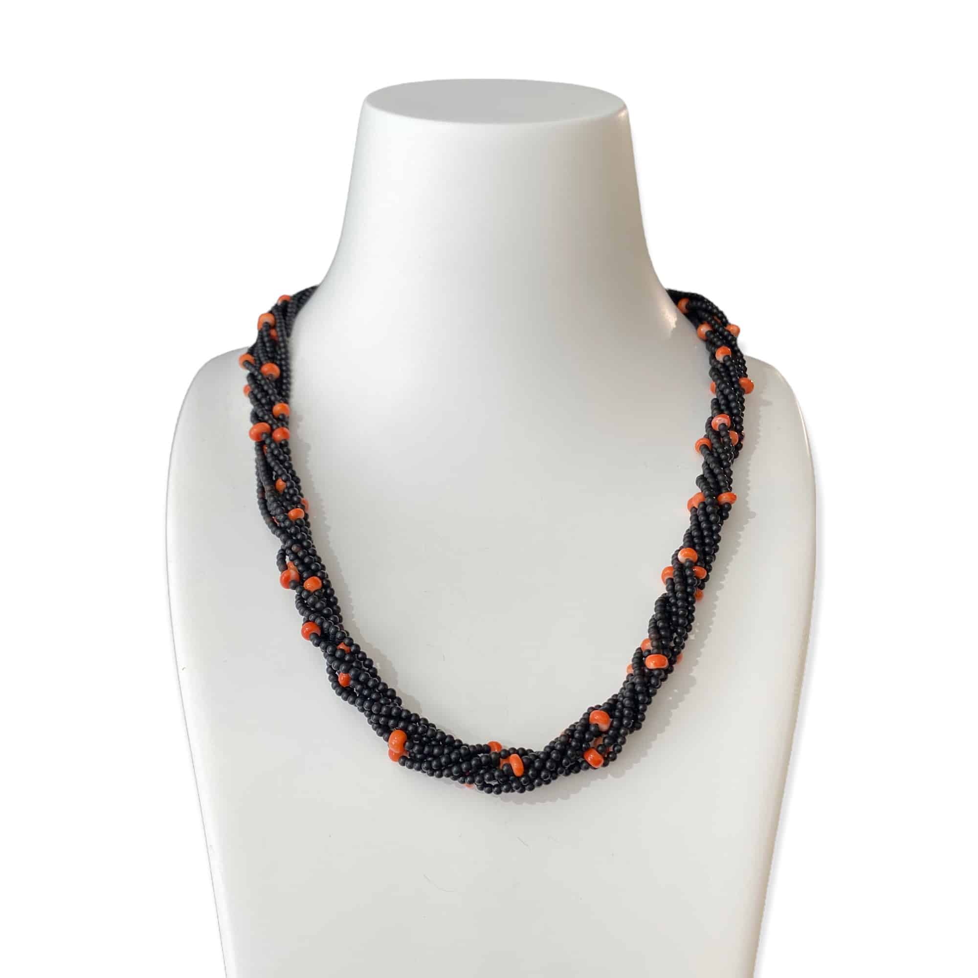 Die mehrreihige Kette ist eine harmonischen Kombination von schwarzem Onyx und leuchtend roter Koralle, die eine faszinierende Kontrastwirkung erzeugen. Mit einer Länge von 45cm ist dieses Schmuckstück im Geschäft gelagert und bereit, Ihre Schmucksammlung zu bereichern. Ein besonderer Tipp für das Tragen dieses Colliers: Wenn Sie diese mehrreihige Kette vor dem Anlegen leicht eindrehen, kommen die einzelnen Stränge besonders schön zur Geltung. Dies verleiht eine zusätzliche Dimension und unterstreicht die einzigartige Schönheit dieses Schmuckstücks.