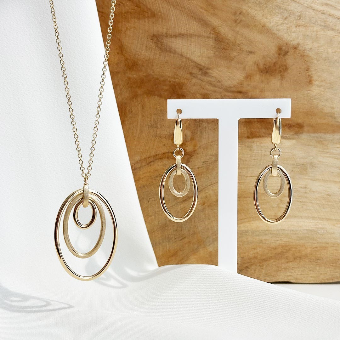 Die Ohrringe sind aus 585 Gelbgold gefertigt und bestehen aus zwei unterschiedlich großen ovalen Elementen. Die unterschiedlichen Oberflächen sorgen für einen abwechslungsreichen Kontrast und verleihen den Ohrringen eine raffinierte Note. Die klassische und unaufdringliche Gestaltung macht dieses Schmuckstück ideal zum Kombinieren und verleiht eine feine Eleganz. Ein vielseitiges Accessoire, das durch die harmonische Kombination von Formen und Oberflächen besticht.