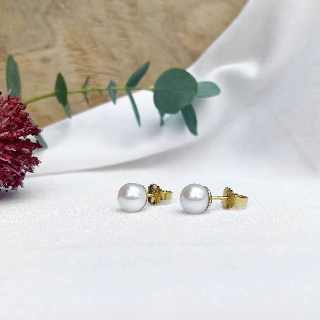 Diese Perlenohrstecker sind klassische Schmuckstücke, die aus hochwertigem 585 Gelbgold gefertigt sind. Jeder Ohrstecker ist mit einer schimmernden Akoya Perle von 6,5mm Größe besetzt. Die Perlen sind von hoher Qualität und haben einen zarten, weichen Glanz, der sie sehr schmeichelnd macht. Die runde Form der Perlen ist perfekt für einen klassischen Look und kann zu vielen verschiedenen Anlässen getragen werden. Die Ohrstecker sind einfach, aber elegant und passen zu jedem Outfit, von lässiger Alltagskleidung bis hin zu formeller Abendgarderobe.