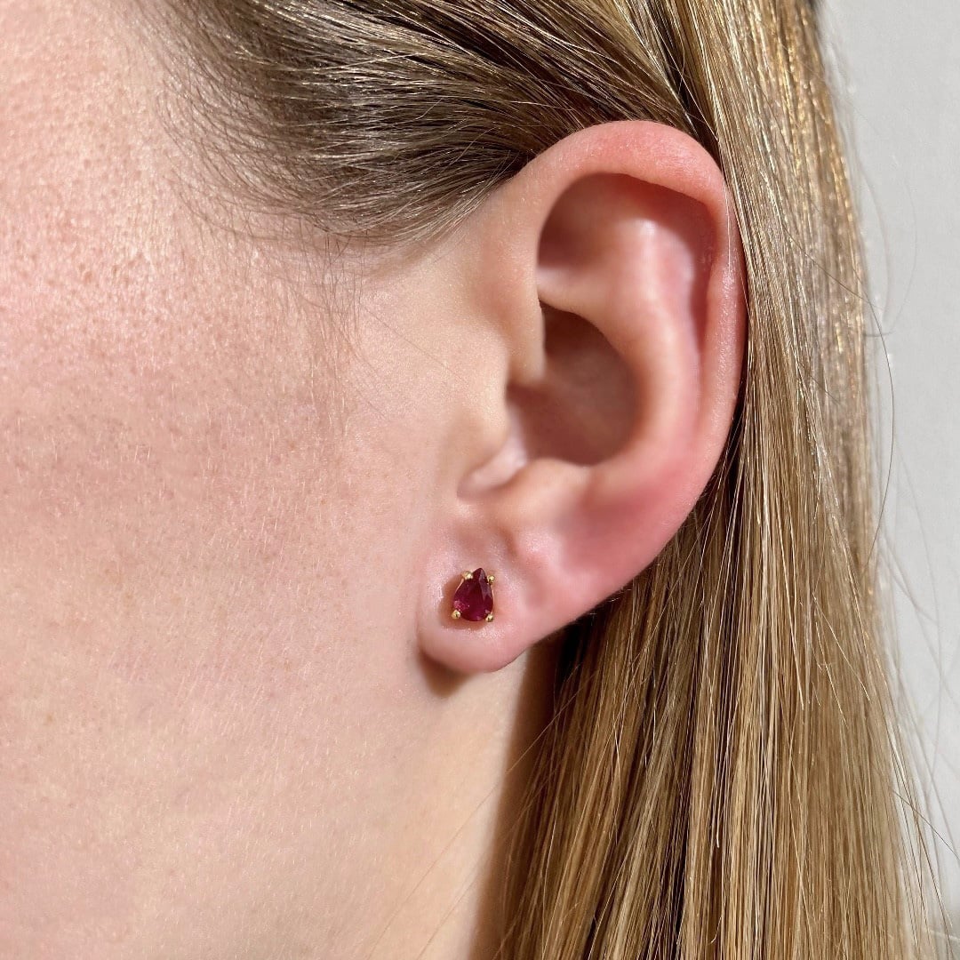 Diese Ohrstecker aus 750er Gelbgold sind mit insgesamt 1,18ct Rubin im Tropfenschliff besetzt. Die Rubine sind klassisch in einer 4-Krappenfassung gehalten, die ihre charakteristische Farbe und den feinen Glanz optimal zur Geltung bringt. Der warme Goldton bildet einen stimmigen Kontrast zum intensiven Rot der Steine. Rubine gelten seit jeher als Ausdruck von Lebenskraft und innerer Stärke – ihre symbolische Bedeutung macht diese Ohrstecker zu einem ausdrucksvollen Geschenk für besondere Momente. Zeitlos und präzise gearbeitet, lassen sie sich sowohl im Alltag als auch zu festlichen Anlässen vielseitig tragen.