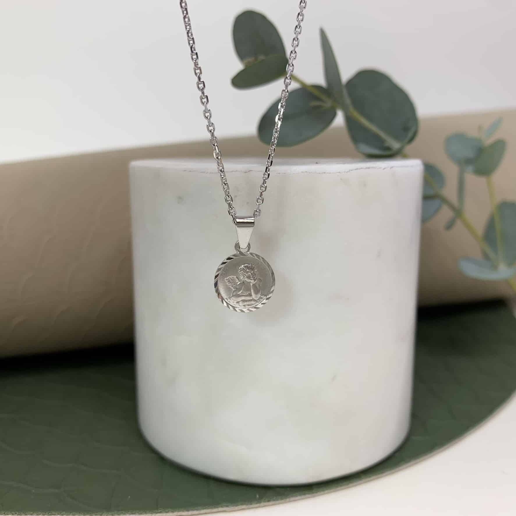 Die Schutzengel-Halskette aus 585 Weißgold ist ein zeitloses und bedeutsames Geschenk zur Taufe. Schutzengel begleiten uns mit besonderer Bedeutung und symbolisieren Schutz und Fürsorge. Der liebevoll gestaltete, runde Schutzengel-Anhänger strahlt eine zarte Eleganz aus und ist ein ideales Geschenk zur Geburt, Taufe, Erstkommunion oder Firmung. In unserem vielfältigen Sortiment finden Sie eine große Auswahl an Weißgoldketten und Bettelarmbändern, um den Schutzengel stilvoll und liebevoll zu präsentieren. Die Größe des Anhängers beträgt 10mm.