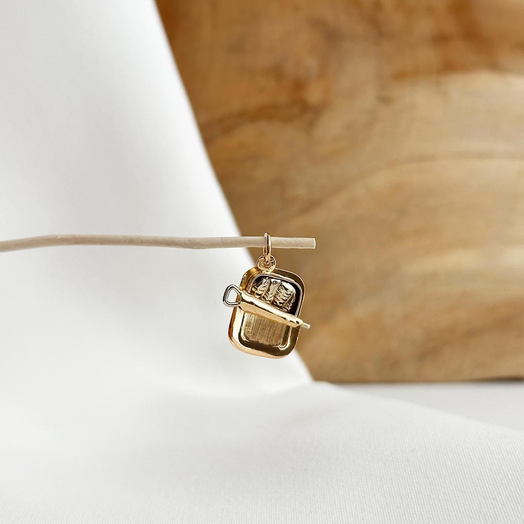 Der Sardinendosen-Anhänger aus 585 Gold besticht durch seine bicolor Gestaltung aus Weiß- und Gelbgold, die liebevoll die feinen Details der Dose hervorhebt. Mit seinem originellen Design ist dieser Anhänger ein besonderer Blickfang an jedem Bettelarmband. Das Schmuckstück eignet sich perfekt für alle, die außergewöhnliche und humorvolle Akzente setzen möchten. Passende Bettelarmbänder in verschiedenen Längen finden Sie selbstverständlich auch in unserem Sortiment.