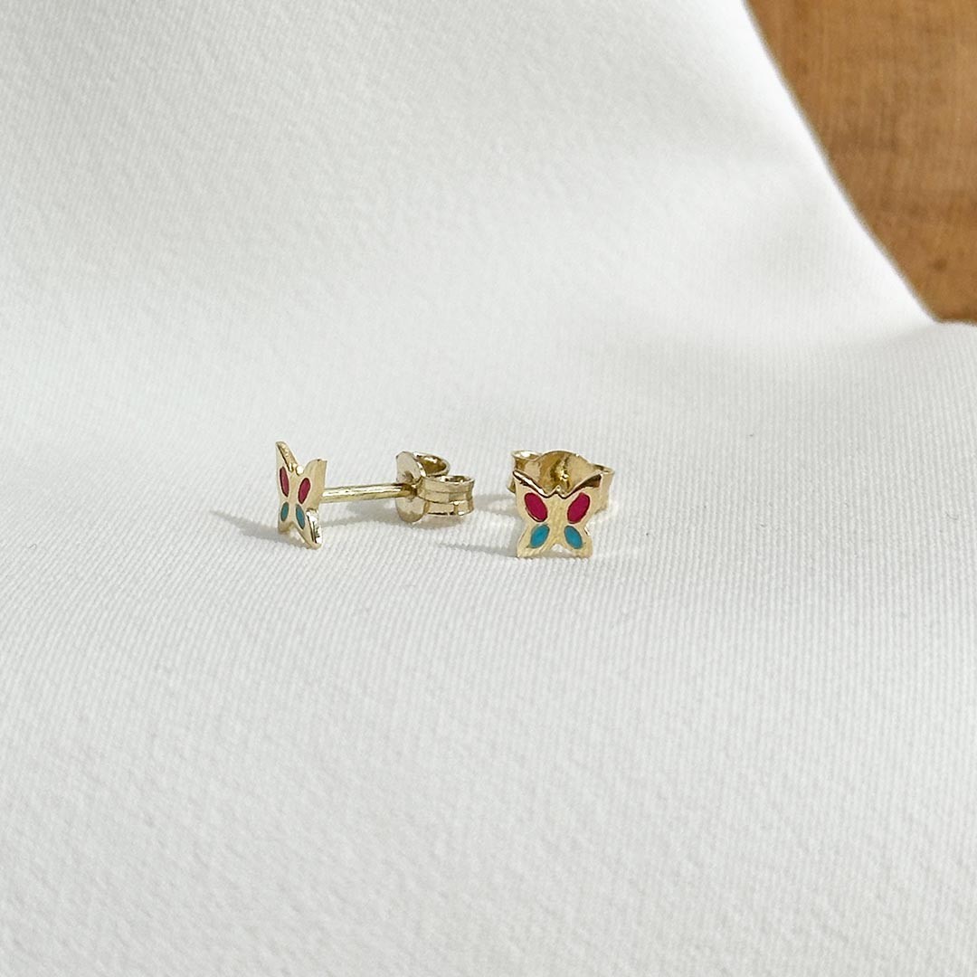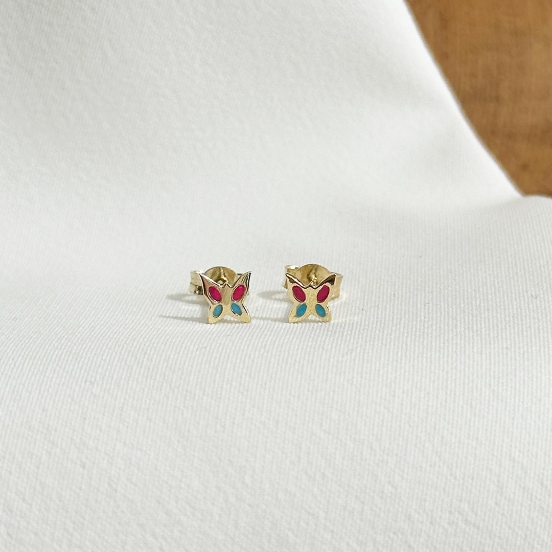 Diese kleinen Schmetterling-Ohrstecker aus 585er Gelbgold sind liebevoll gestaltet und begeistern mit bunt lackierten Flügeln in Rosa und Blau – ein fröhliches Farbspiel, das Kinderaugen leuchten lässt. Die kindgerechte Größe und das verspielte Design machen sie zu idealen Begleitern für jeden Tag. Leicht, bequem zu tragen und mit ihrer fröhlichen Ausstrahlung einfach ein Stück Freude am Ohr – ein bezaubernder Ohrschmuck, der Farbe und Leichtigkeit in den Alltag bringt.$LF$LF$LF$LF$LF$LF$LF$LF