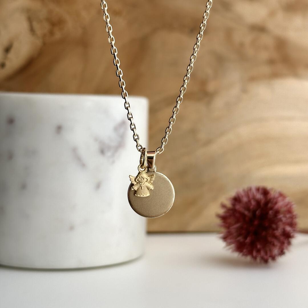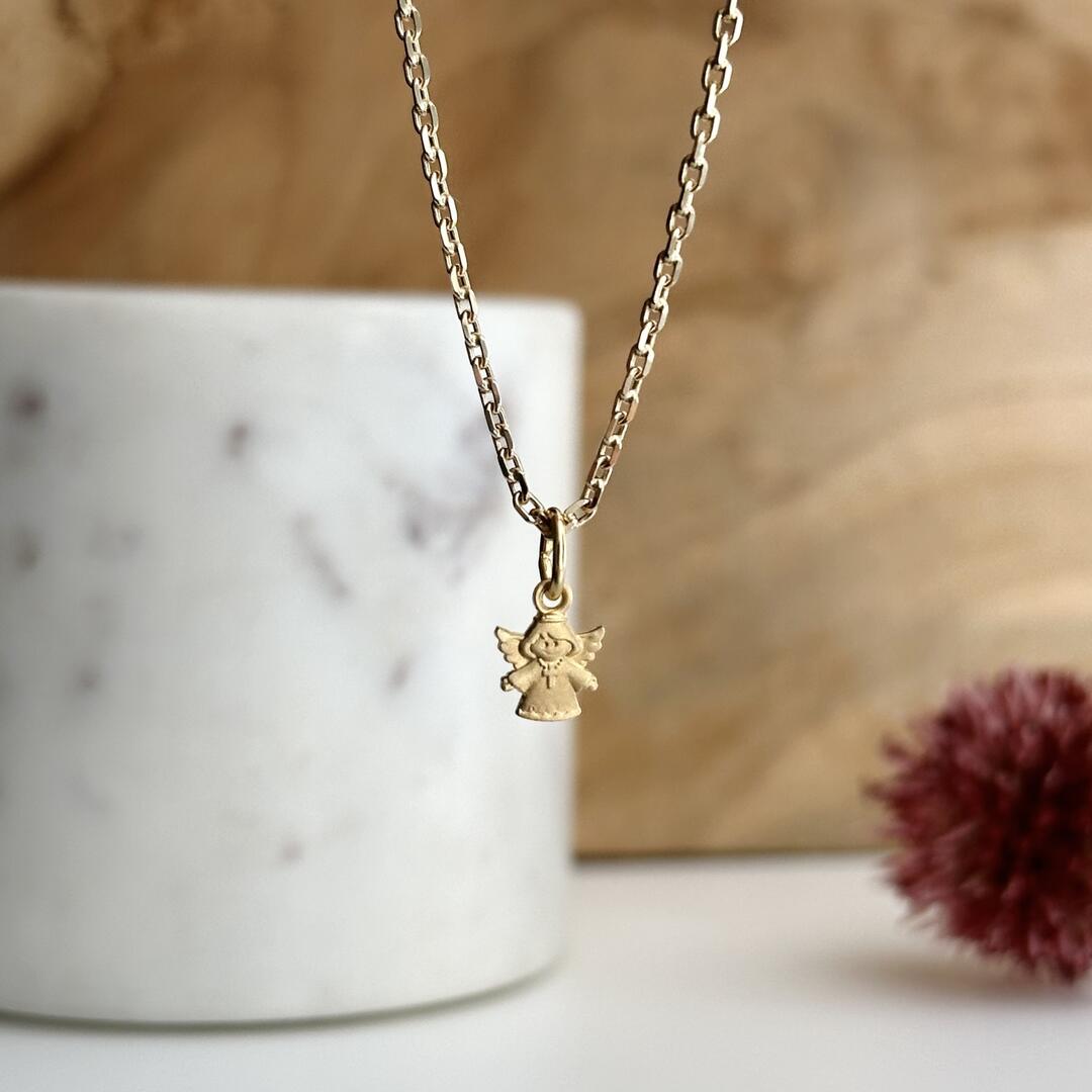 Der Schutzengel auf einer Halskette gilt als traditionelles Geschenk zur Taufe und wird gerne von Pat:innen überreicht. Dieser kleine Anhänger aus 585er Gelbgold hat eine Größe von 9mm und eignet sich nicht nur zur Taufe, sondern auch als Geschenk zur Geburt oder später zur Erstkommunion. Getragen an einer feinen Goldkette wird er zu einem bleibenden Symbol des Schutzes und der Verbundenheit. Für Babys und Kinder empfehlen wir eine Kettenlänge von 36 cm, passende Goldketten finden Sie gleich unterhalb der Produktbilder. Auf Wunsch kann der Anhänger auch wunderbar mit einer Gravurplatte kombiniert werden, um eine persönliche Botschaft zu ergänzen. Ein zeitloses Schmuckstück mit besonderer Bedeutung.