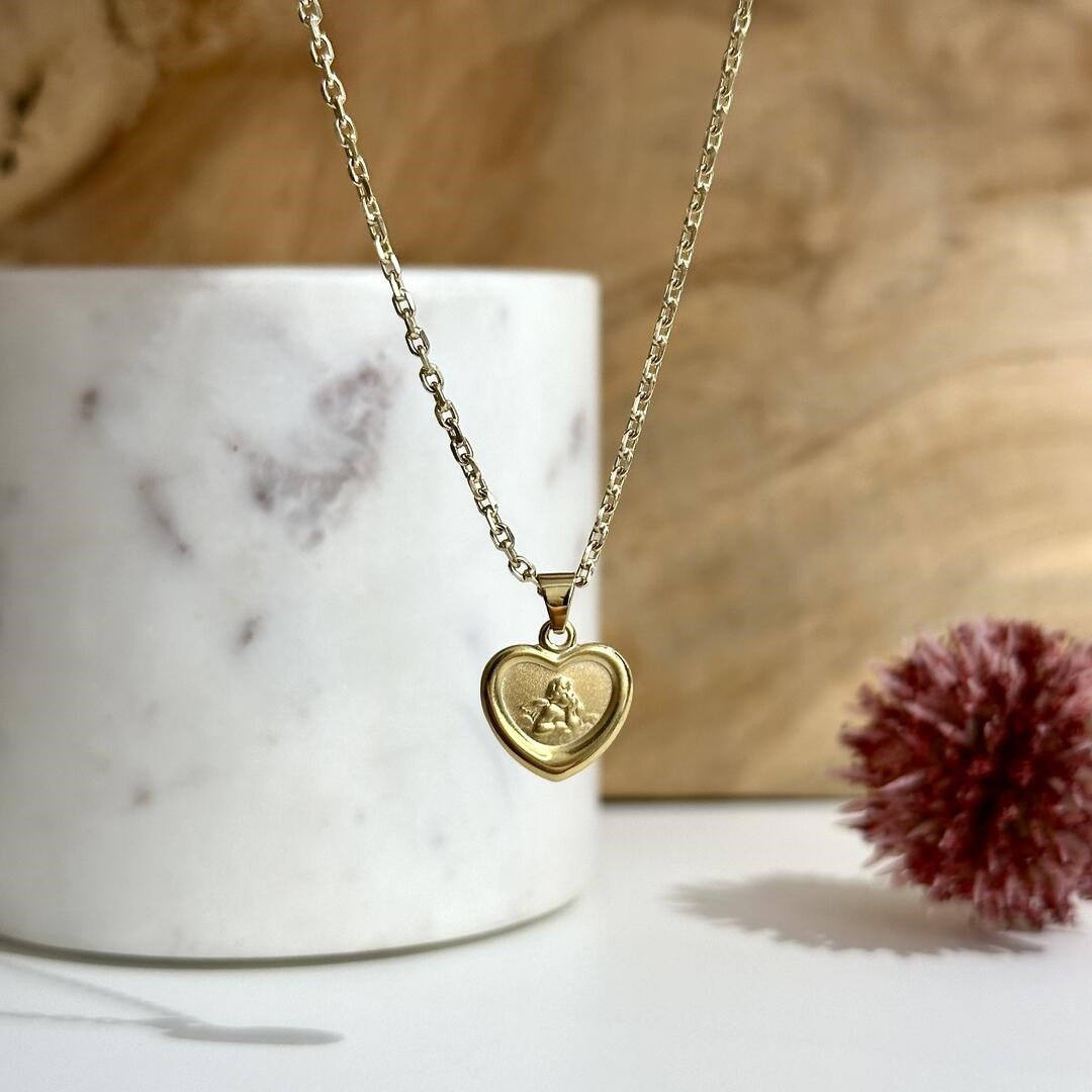 Dieser Schutzengel-Anhänger aus 585er Gelbgold in Herzform misst 10mm und besticht durch seine weiche, runde Form. Der polierte Rand verleiht dem Anhänger einen eleganten Glanz und hebt den Engel im Inneren besonders hervor. Mit seiner zarten und schmeichelnden Erscheinung ist dieser Anhänger ein wunderbares, symbolträchtiges Geschenk für Taufe, Geburt oder Erstkommunion. Die feine Gestaltung macht ihn zu einem zeitlosen Schmuckstück, das für Schutz, Geborgenheit und Liebe steht. Ideal für Kinder oder als zartes Schmuckstück für Erwachsene. Auf der Rückseite bietet der Anhänger Platz für eine kurze Gravur. Passende Goldketten finden Sie ebenfalls in unserem Sortiment.
