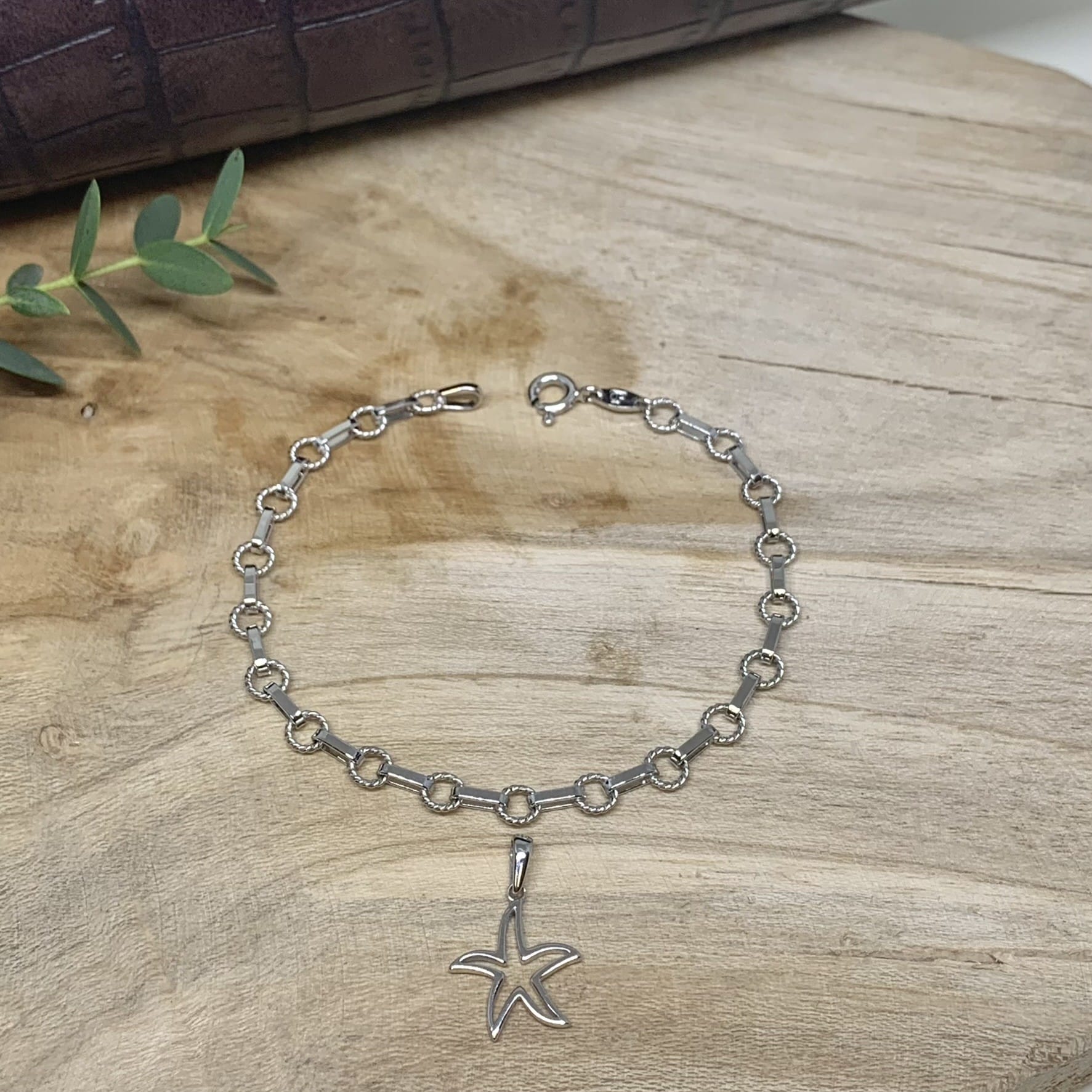 Dieser entzückende Seestern-Anhänger aus 585er Weißgold bringt maritimes Flair an jedes Bettelarmband. Mit einer Größe von 15mm ist er angenehm dezent und dennoch ein schöner Blickfang – ideal für alle, die das Meer, den Strand und die Welt unter Wasser lieben. Das schlichte, aber liebevoll gestaltete Design macht ihn zu einem zeitlosen Begleiter, der sowohl im Alltag als auch zu besonderen Anlässen getragen werden kann. Besonders schön kommt er auf einem zarten Weißgold-Bettelarmband zur Geltung. Eine Auswahl an passenden Bettelarmbändern und weiteren Schmuckstücken aus Weißgold finden Sie ebenfalls in unserem Sortiment.