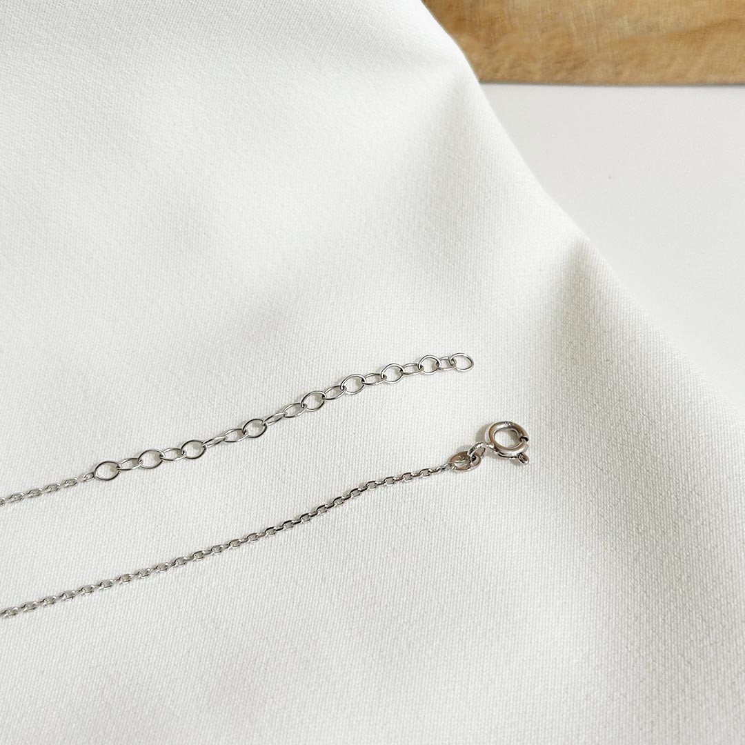 Diese 585er Weißgoldkette besticht durch ein filigranes Design und ein mittig fixiertes Gravurplättchen, das links und rechts von der Kette gehalten wird. Sie eignet sich perfekt für eine kleine Gravur, die dem Schmuckstück eine persönliche Note verleiht. Das schlichte Collier lässt sich vielseitig kombinieren, ob als dezenter Begleiter zu einer Perlenkette oder in Kombination mit anderen zarten Ketten für einen modernen Layering-Look. Ein Schmuckstück für jeden Anlass, das zeitlose Eleganz mit individuellen Möglichkeiten verbindet. Die Länge beträgt 40 cm + 5 cm Zusatzlänge.