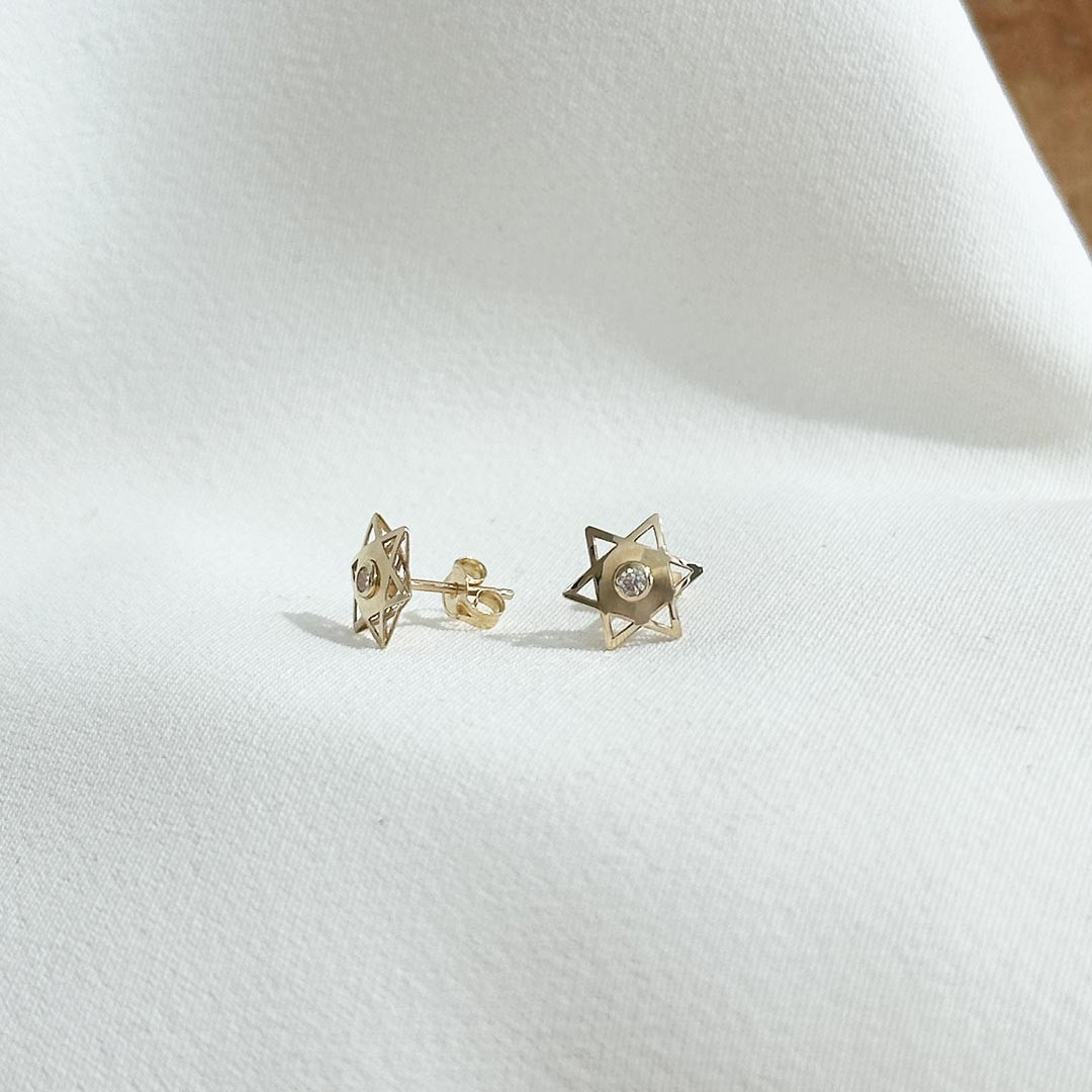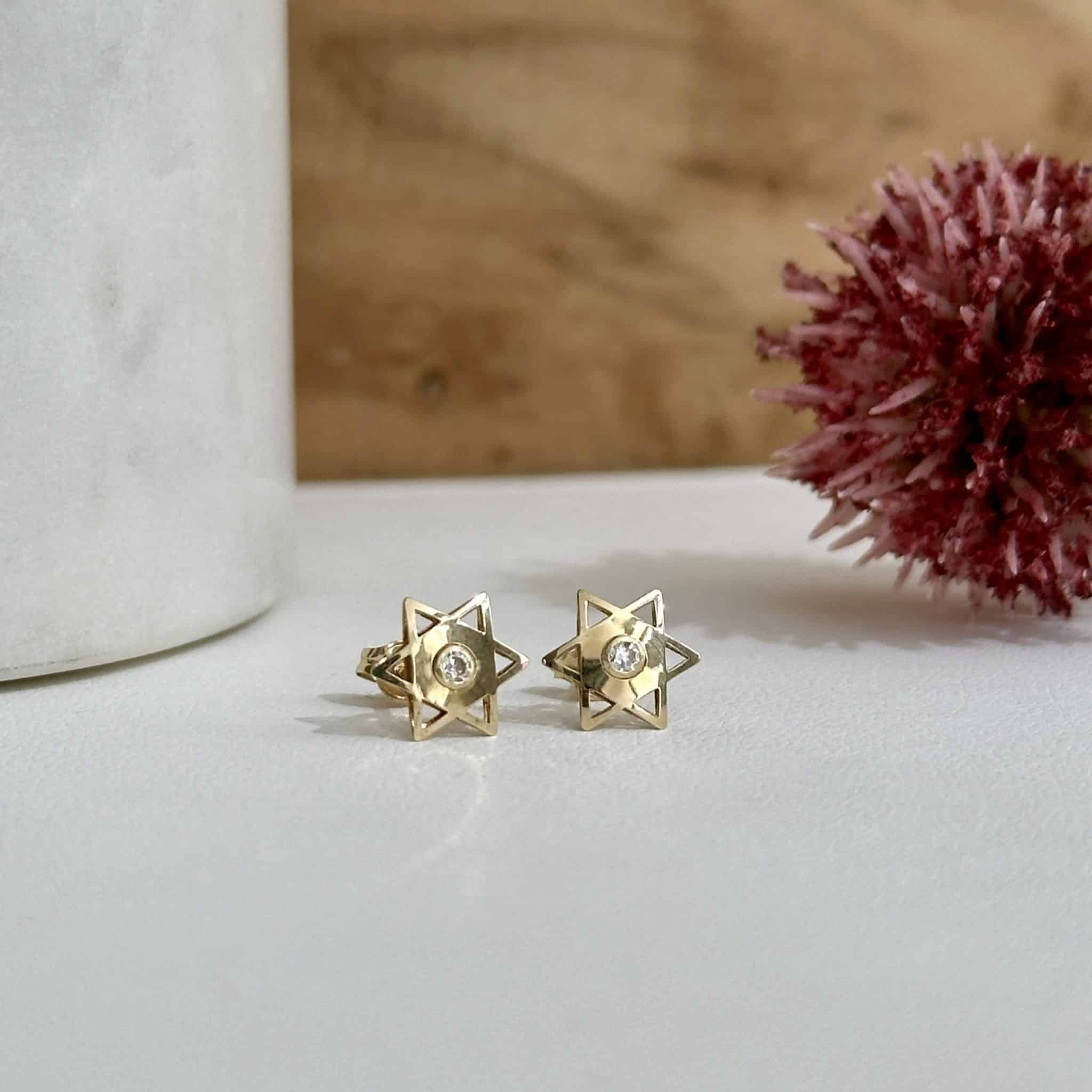 Zirkonia Davidstern Ohrstecker 585 Gelbgold