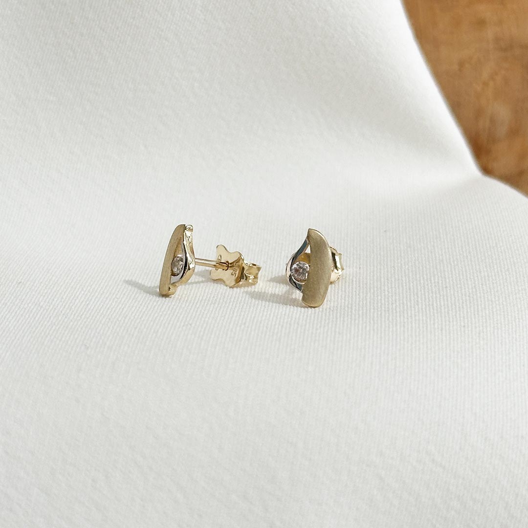 Diese Zirkonia-Ohrstecker aus 585er Weiß- und Gelbgold vereinen klassische Zurückhaltung mit feinen Kontrasten. Der Großteil der Oberfläche ist mattiertes Gelbgold, das durch einen polierten Weißgold-Akzent ergänzt wird – eine harmonische Kombination, die dem Design eine moderne Note verleiht. In der Mitte sitzt ein farbloser Zirkonia, der dezent funkelt und dem Ohrschmuck einen Hauch Eleganz verleiht. Mit einer Größe von 8 mm sind die Stecker angenehm zu tragen und passen zu jedem Anlass – ein stilvoller Begleiter für jeden Tag.