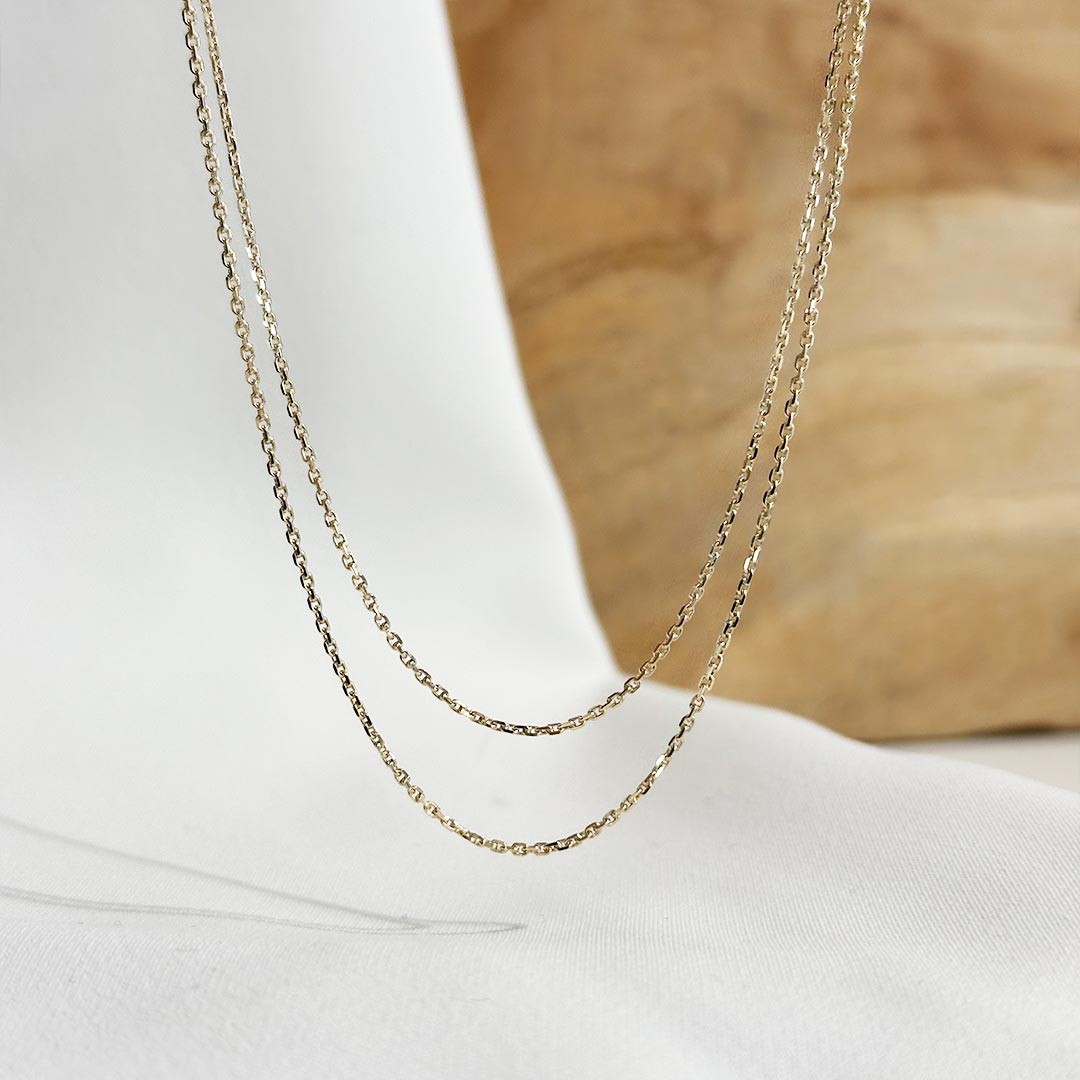 Diese Karreekette aus 585 Gelbgold fasziniert durch ihr zweireihiges Design, das für eine außergewöhnliche Optik sorgt. Mit einer Länge von 42cm und einer Stärke von 1mm pro Kette liegt sie angenehm am Hals. Die facettierten, ovalen Glieder reflektieren das Licht besonders schön und sorgen für ein dezentes Funkeln. Tipp zur Kettenlänge: Als Orientierung gelten folgende Standardlängen – für Damen meist 42–45cm, für Herren 50–60cm und für Kinder etwa 36–40cm.